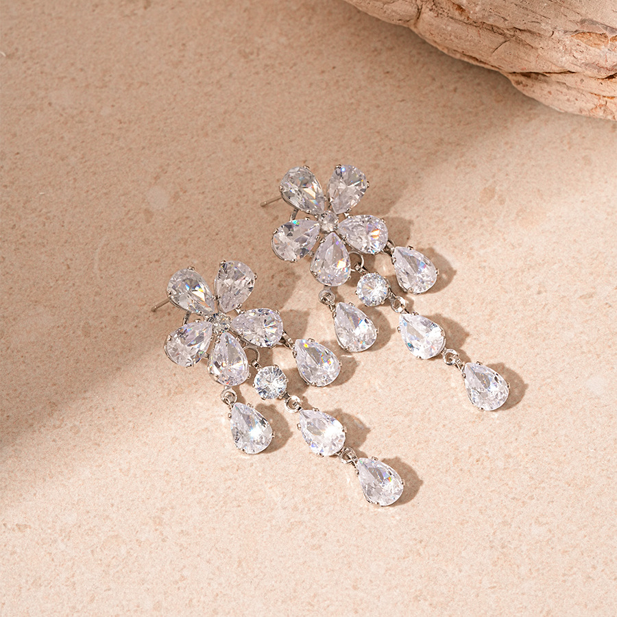 Ciúbach Zirconia Micrimhilseogra réiteodh seiteanna Jewelry Prás, le Ciúbach Zirconia, jewelry faisin & stíleanna éagsúla do rogha & do bhean, airgid, Necklace size: circumference 35cm, tail chain :9.5cm; Earrings :6x2.5cm., Díolta De réir PC
