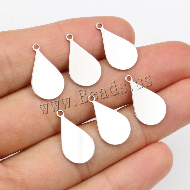 Charm Clib Cruach dhosmálta, 304 Cruach dhosmálta, Teardrop, dath airgid plated, DIY, airgid, 18x10mm, 100ríomhairí pearsanta/Mála, Díolta De réir Mála