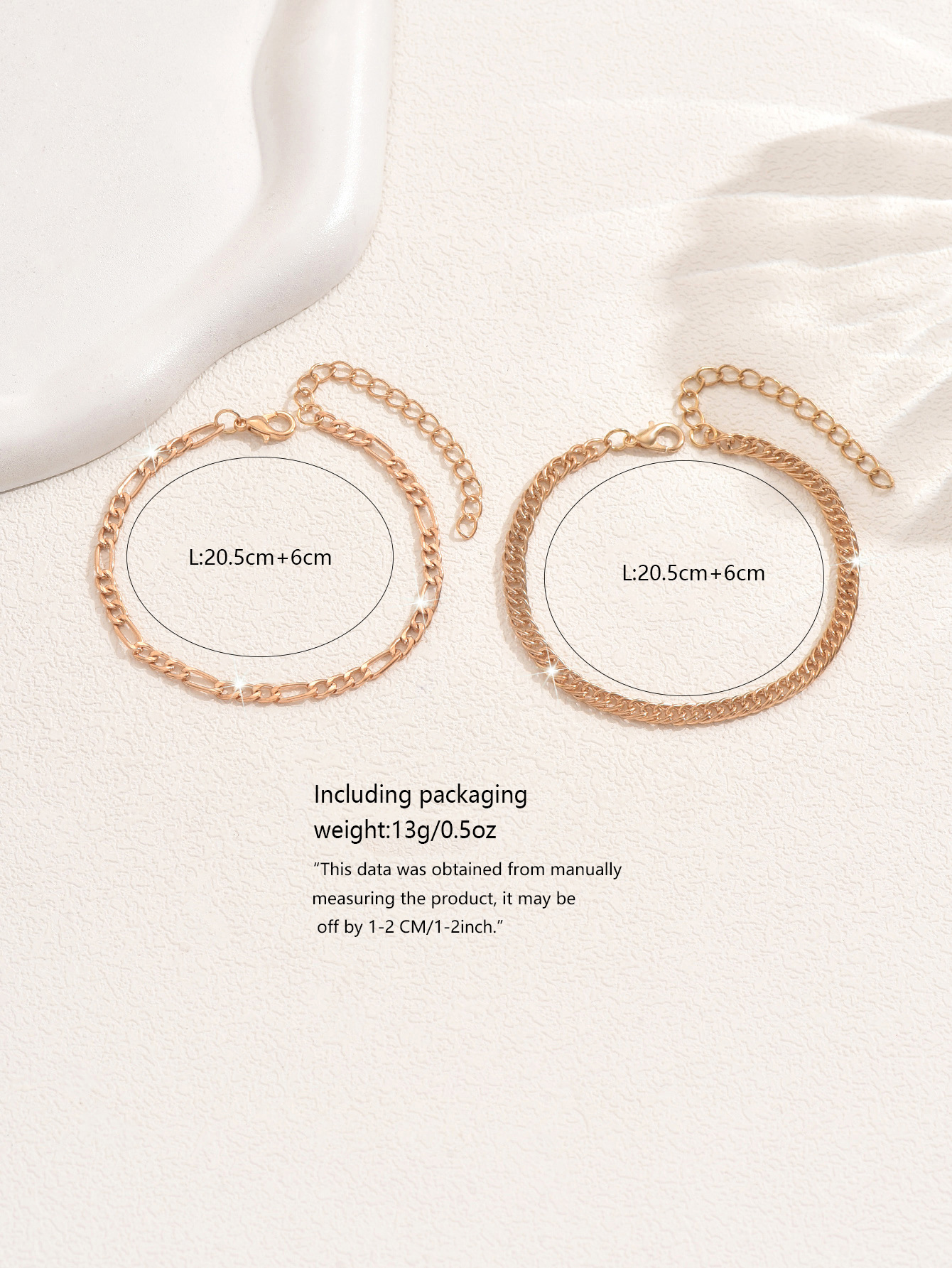 Sinc Alloy Bracelet Socraigh, le 2.4inch slabhra extender, dath an óir plated, 2 phíosa & unisex, Fad Thart 8 Inse, Díolta De réir Socraigh