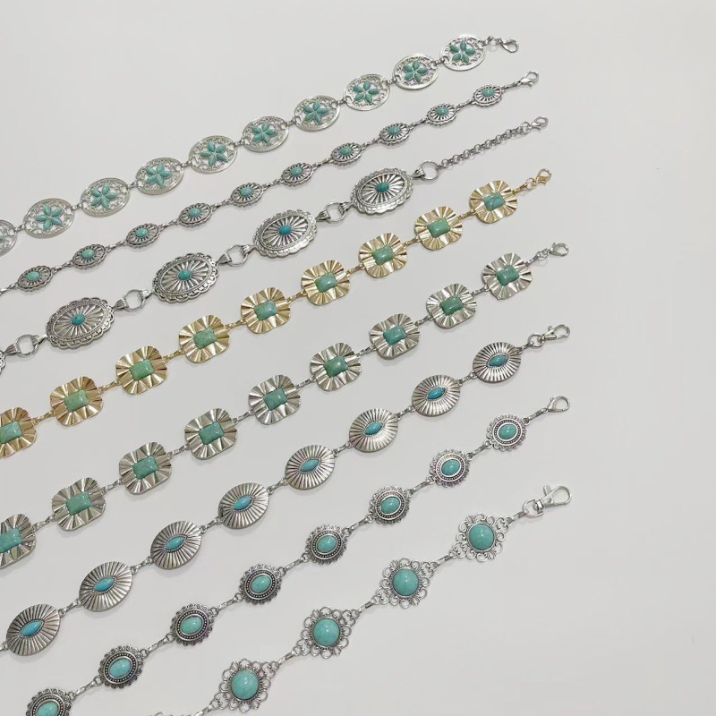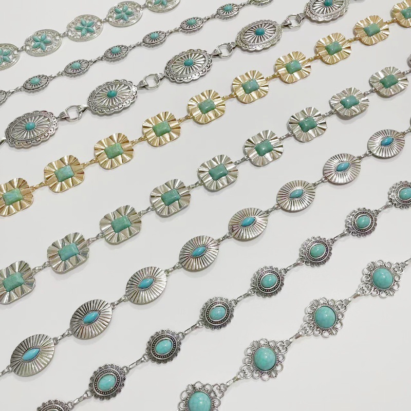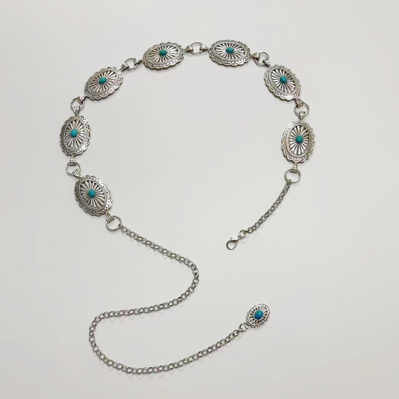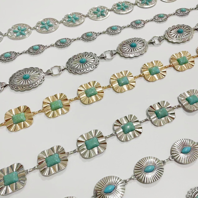 Sinc Alloy slabhra waist, le Turquoise sintéiseach, plátáilte, stíleanna éagsúla do rogha & do bhean, Fad Thart 105-120 cm, Díolta De réir PC