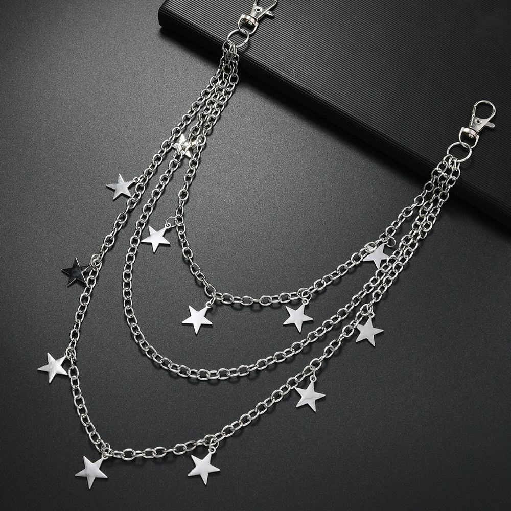 Sinc Alloy slabhra waist, le Iarann, Star, plátáilte, trí shraith & stíl Punc & unisex, airgid, Díolta De réir PC