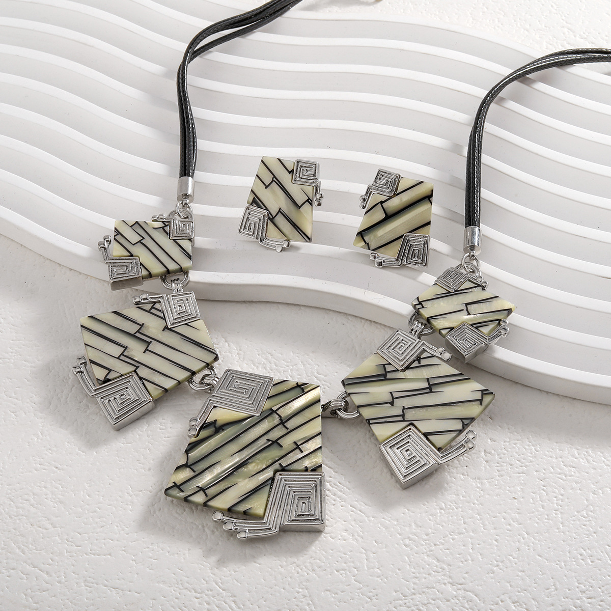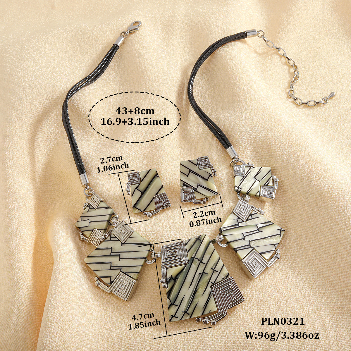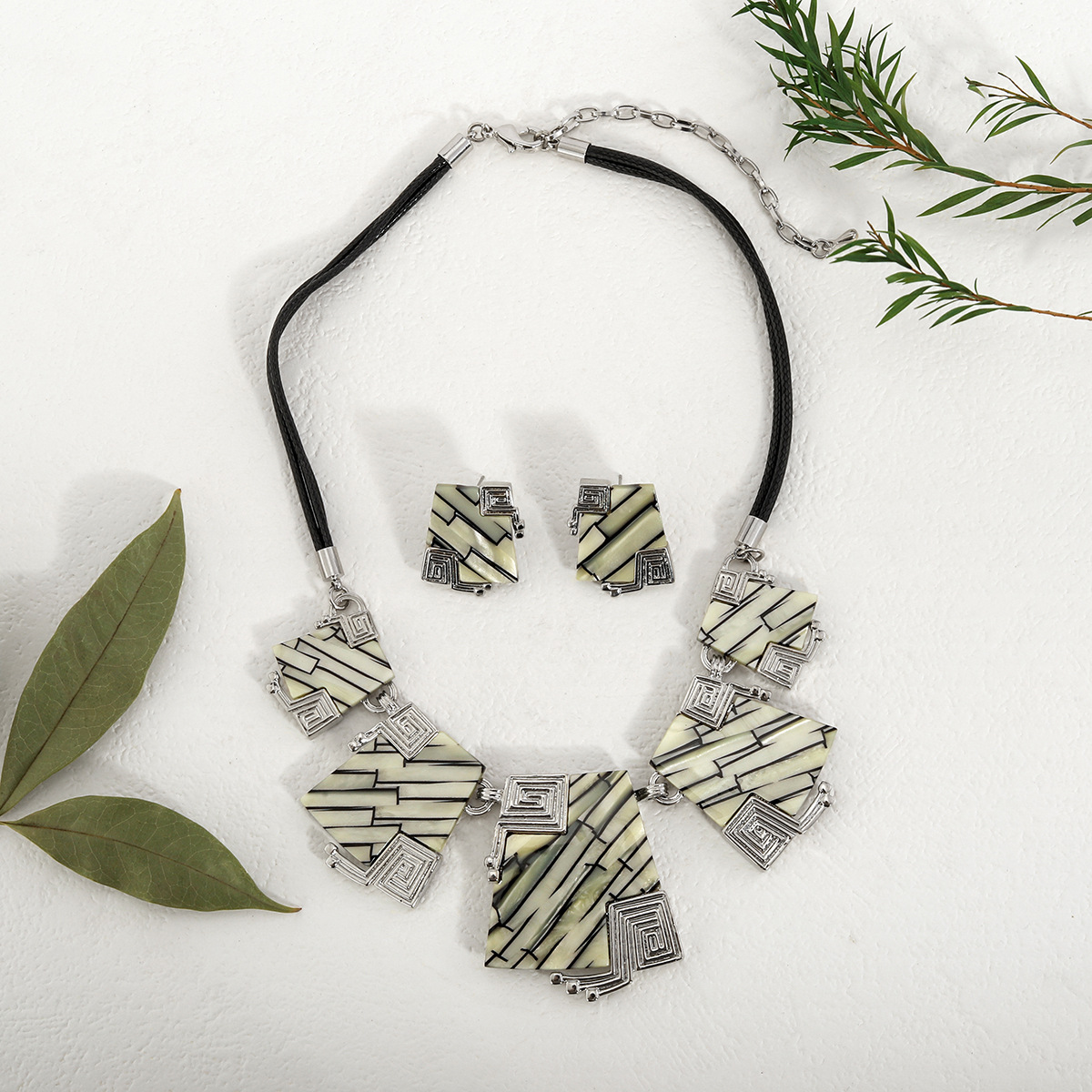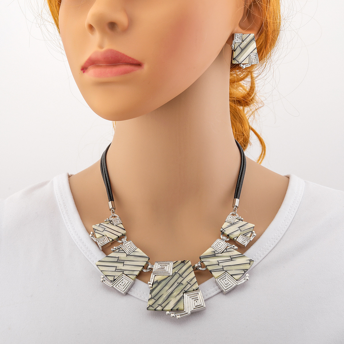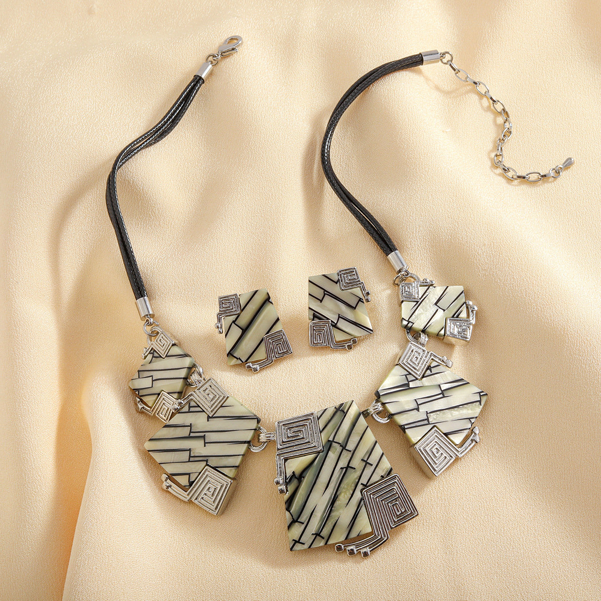 Sinc Alloy Socraigh Jewelry, Cluaise Graí & muince, le corda leathair & Plank, plátáilte, 2 phíosa & Ciseal Dúbailte & do bhean, Díolta De réir Socraigh