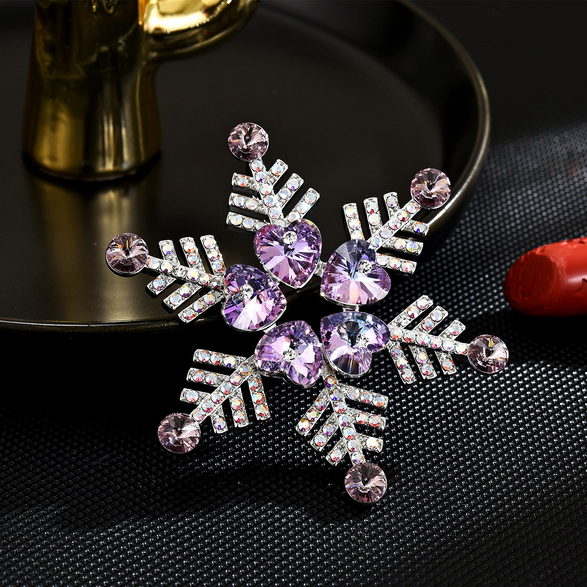 criostail Bróiste, Prás, le Crystal hOstaire, plátáilte, micrea réiteach zirconia ciúbach & do bhean, airgid, 58x59mm, Díolta De réir PC
