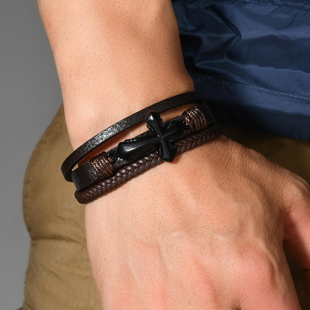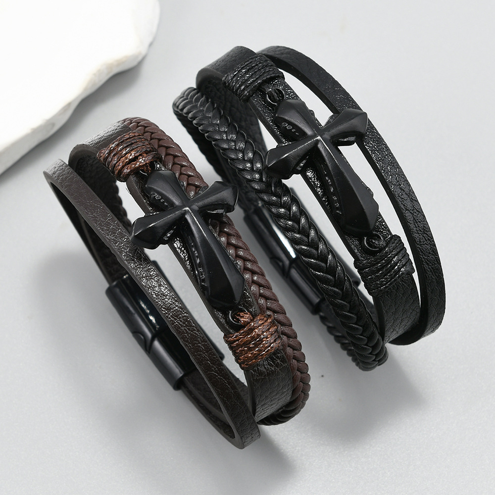 PU Bracelet, le Sinc Alloy, Cross, lámhdhéanta, seanré & multilayer & do fear, dathanna níos mó le haghaidh rogha, Díolta De réir PC
