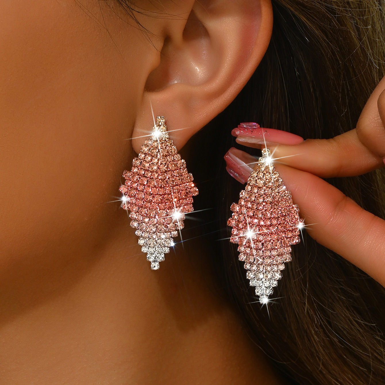 Prás Buail Earring, Rhombus, plátáilte, do bhean & le rhinestone, dathanna níos mó le haghaidh rogha, 25x49mm, Díolta De réir Péire