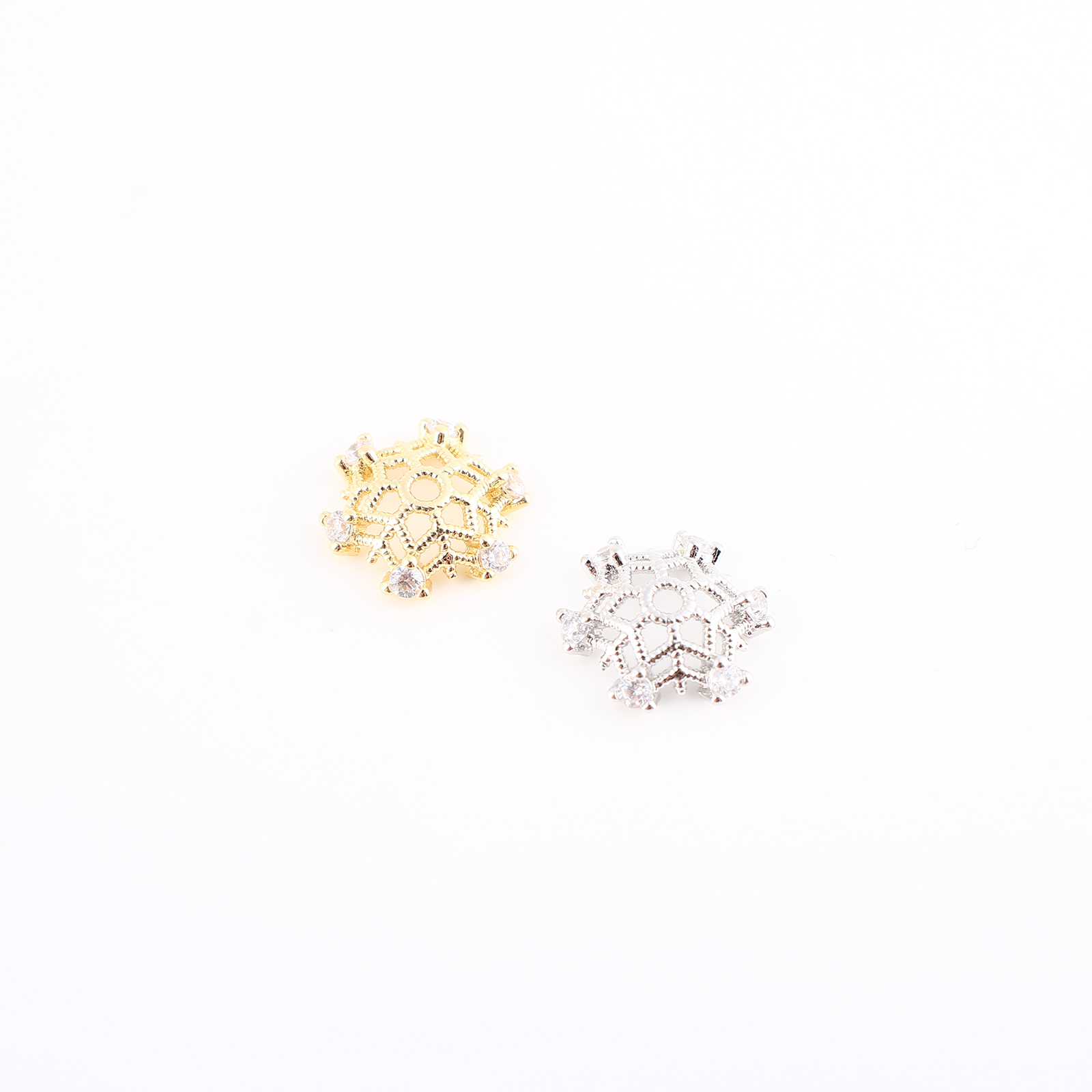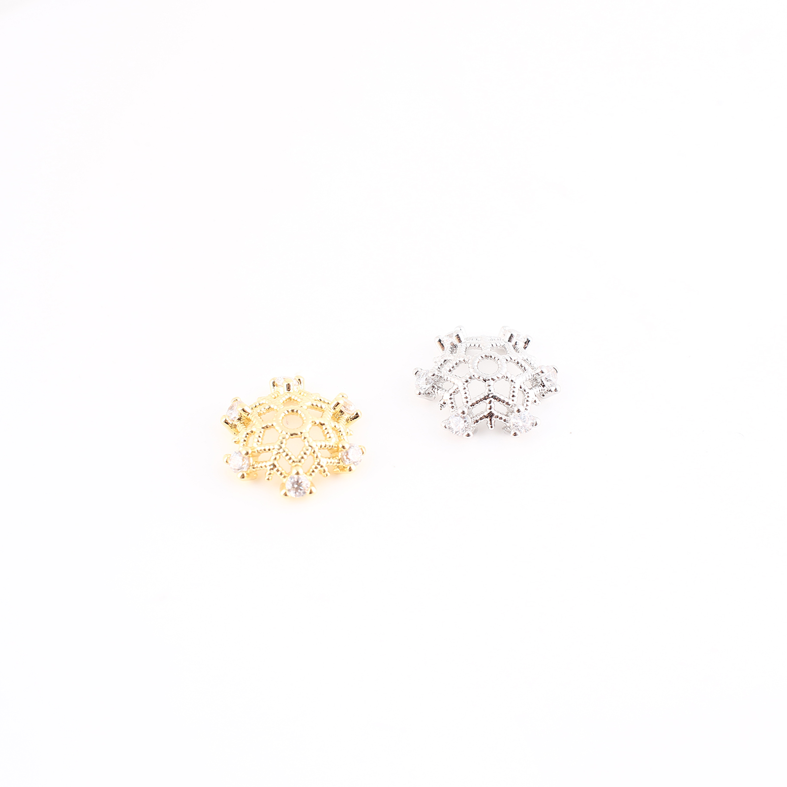 Prás Bead Cap, DIY & micrea réiteach zirconia ciúbach & log, dathanna níos mó le haghaidh rogha, 11x11x3mm, Díolta De réir PC