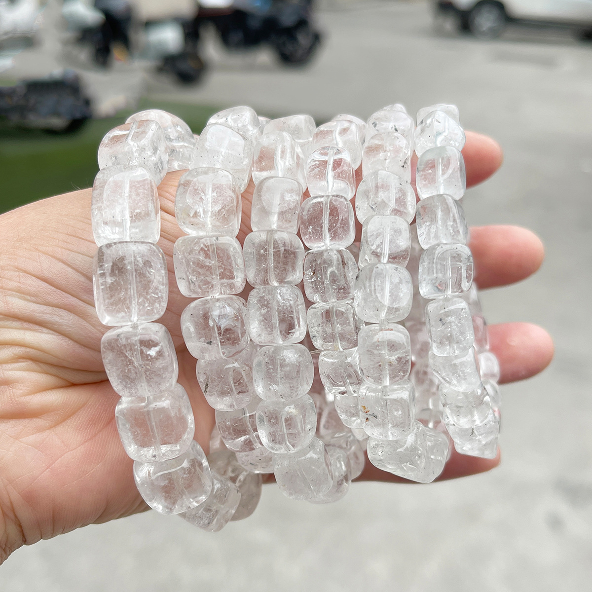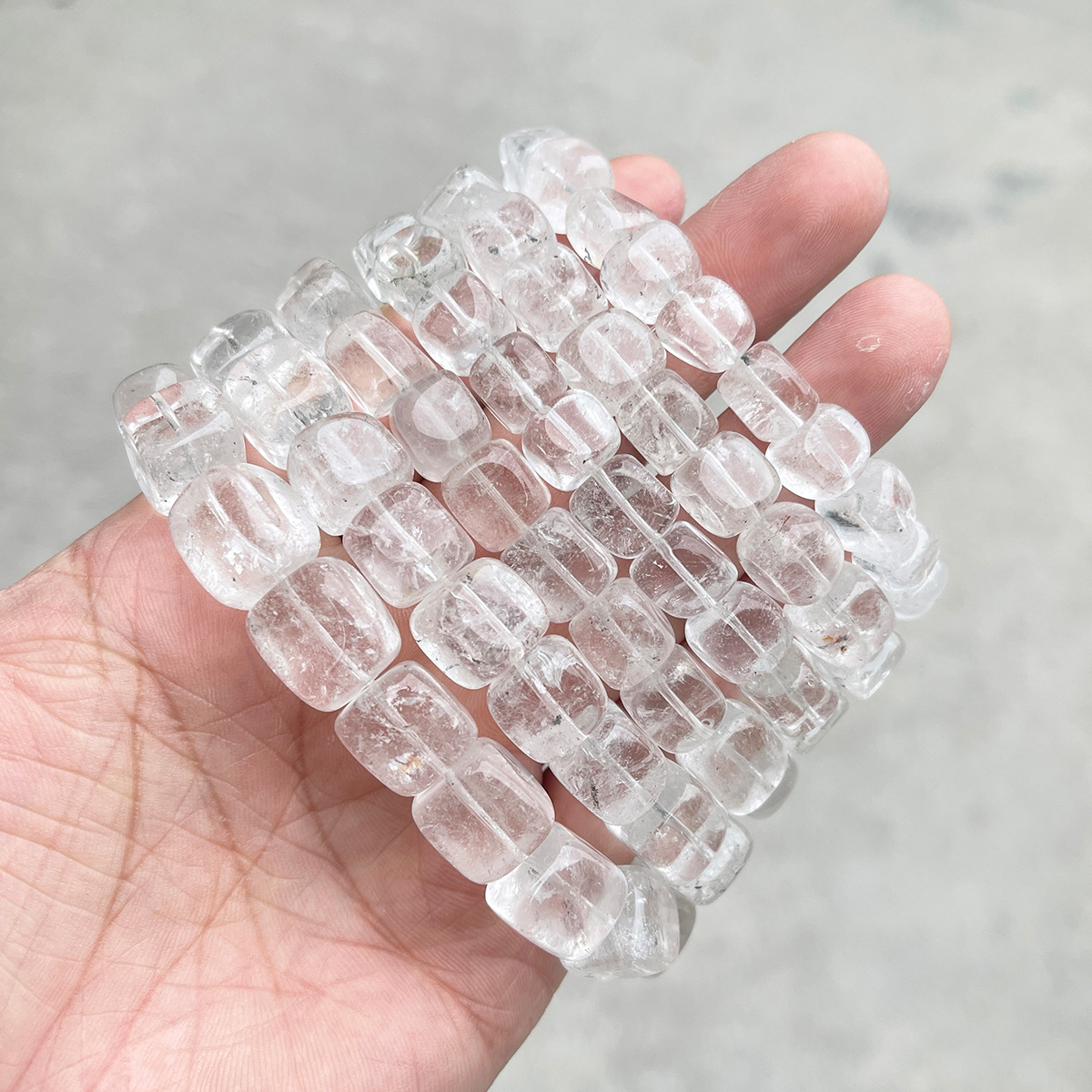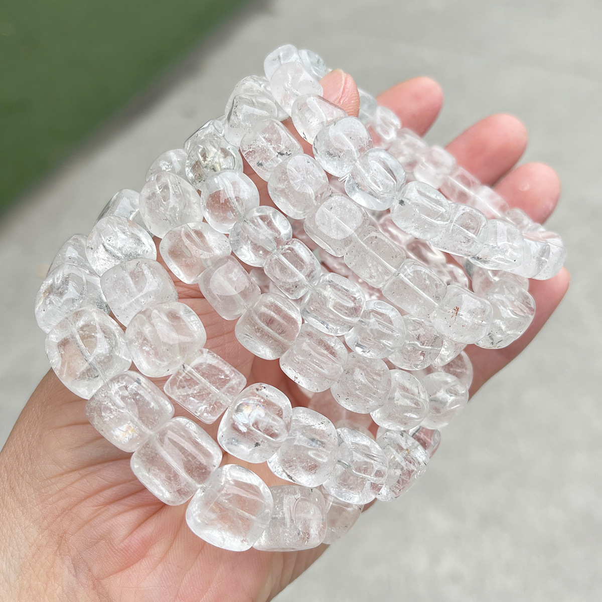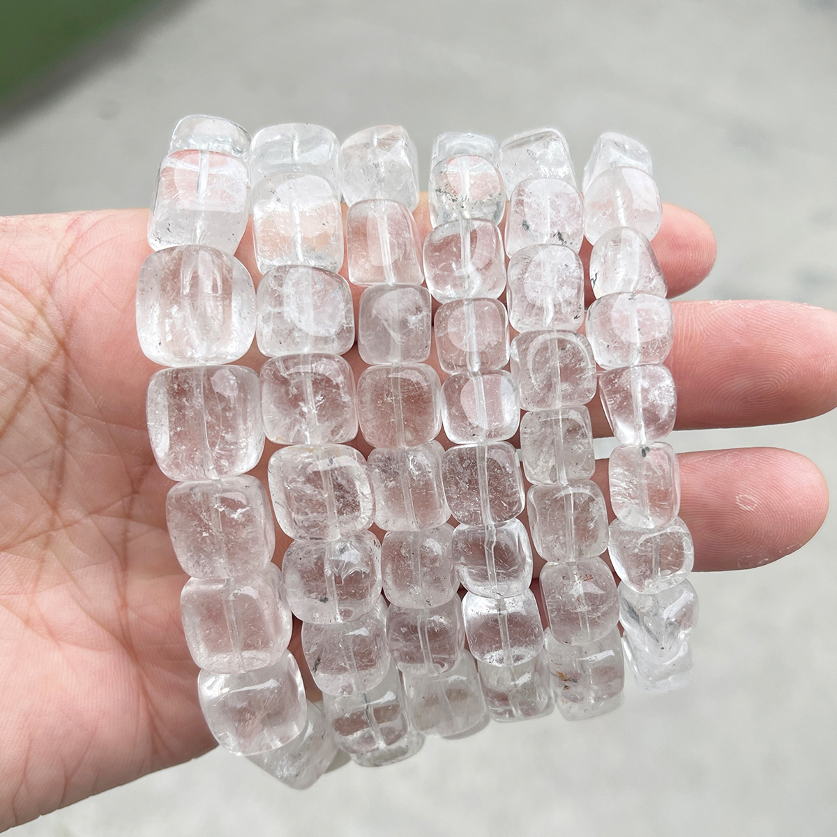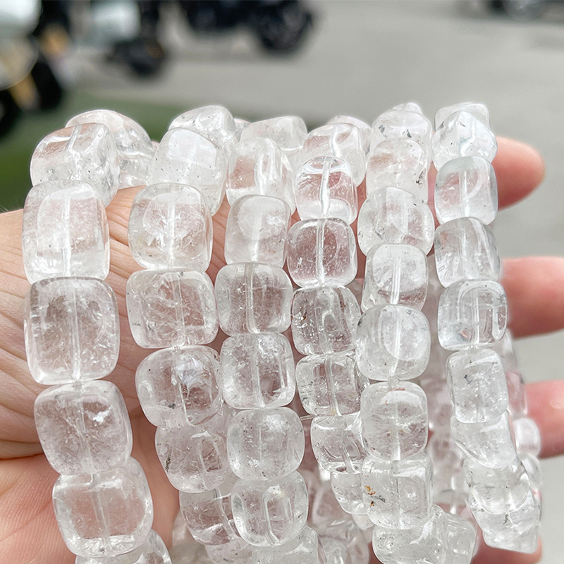 Geal Grianchloch Bracelet, Cearnóg, lámhdhéanta, nádúrtha & unisex & méid éagsúla do rogha, Fad Thart 6-7.5 Inse, Díolta De réir PC