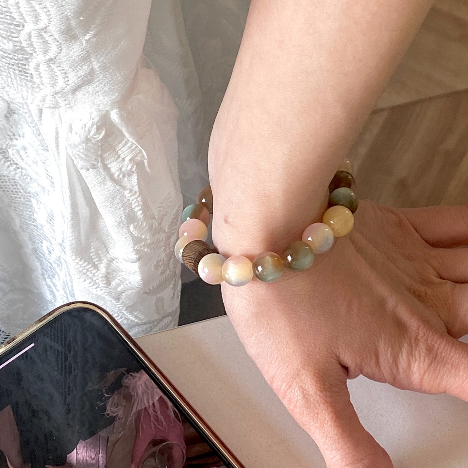 Roisín Bracelet, le Adhmad, jewelry faisin & do bhean, Fad Thart 17.8 cm, Díolta De réir PC