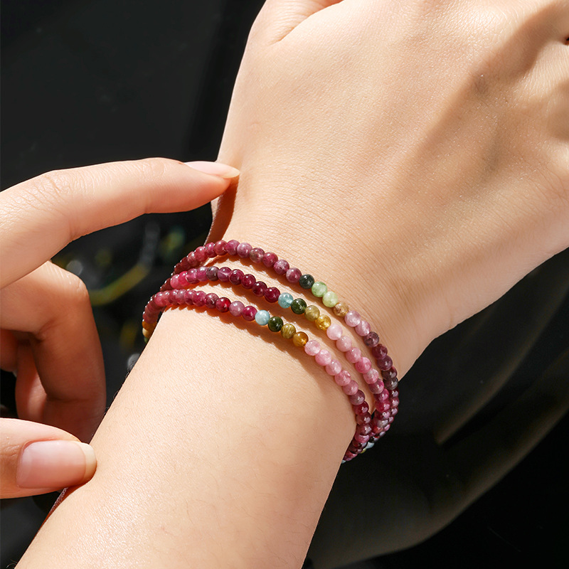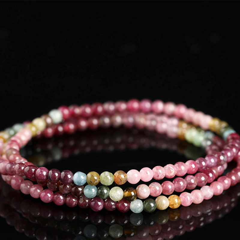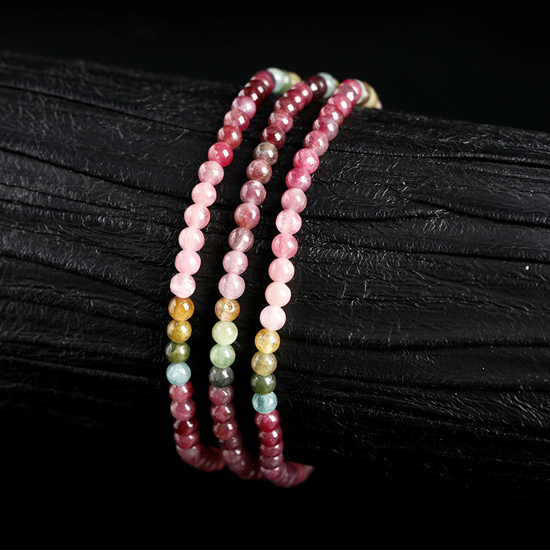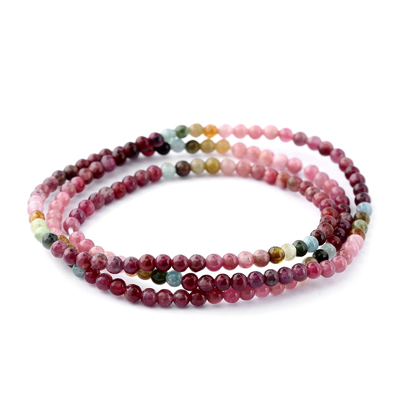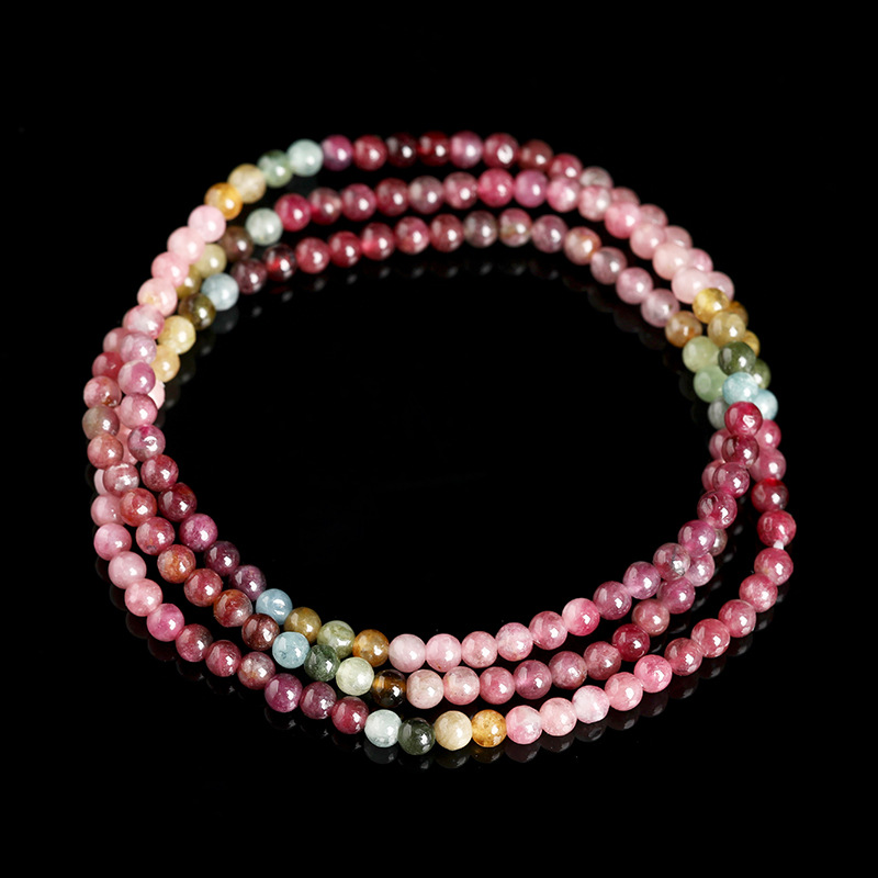 Tourmaline Bracelet, lámhdhéanta, multilayer & nádúrtha & stíl tíre & do bhean, bándearg, beads length 3mm, Fad Thart 15-20 Inse, Díolta De réir PC