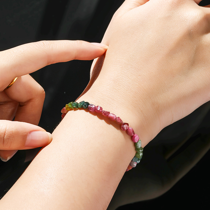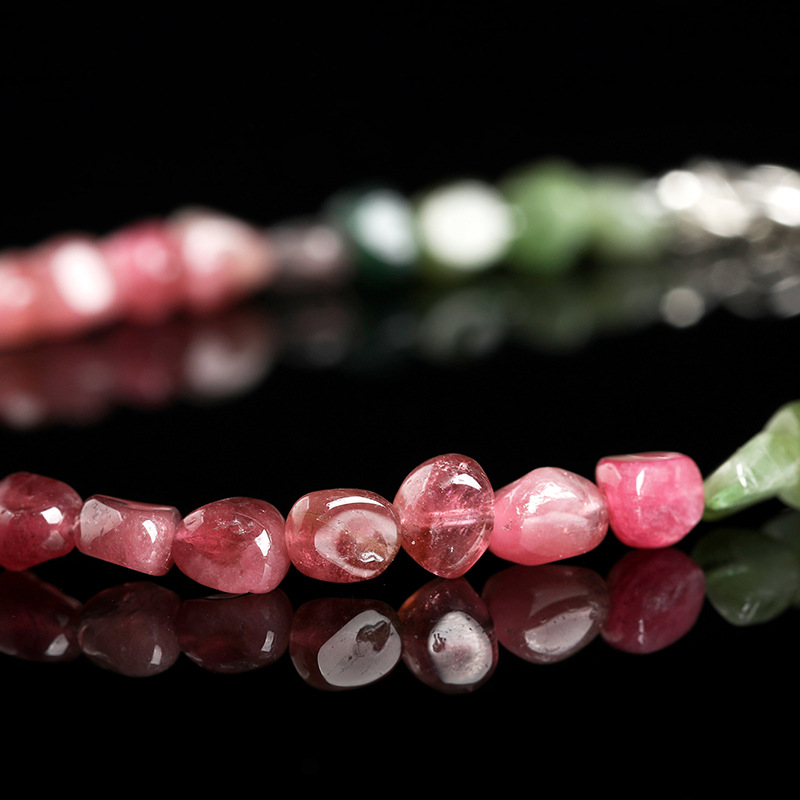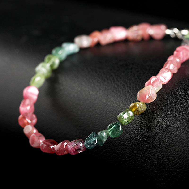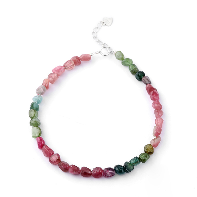 Tourmaline Bracelet, le 925 Sterling Silver, Nuggets, lámhdhéanta, nádúrtha & do bhean, beads length 4-6mm, Fad Thart 6-7 Inse, Díolta De réir PC