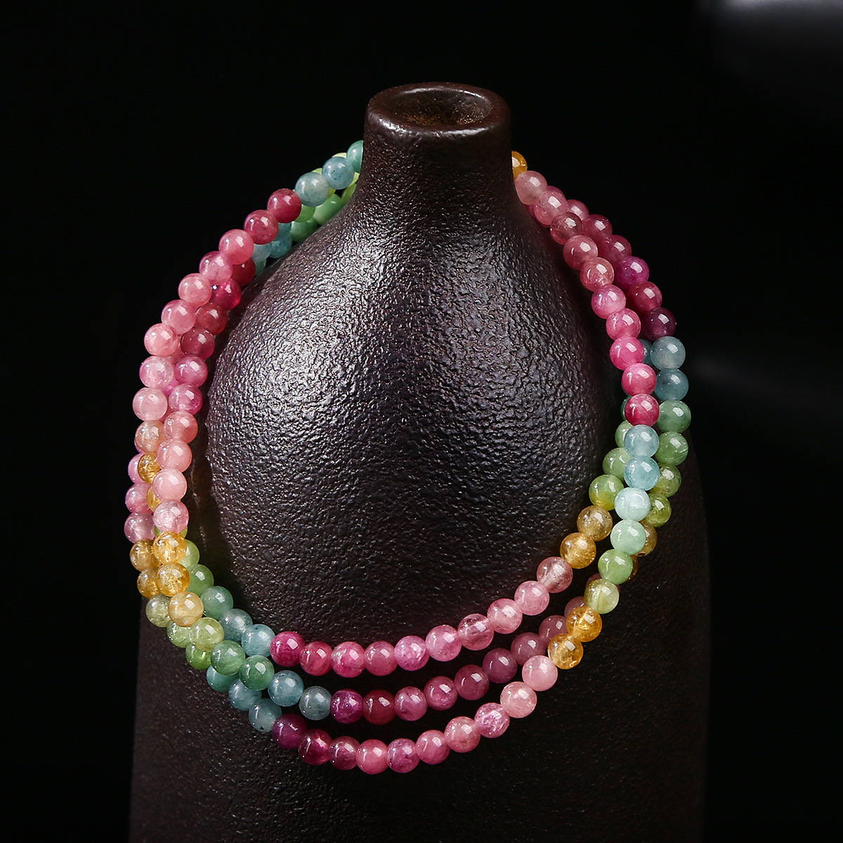 Tourmaline Bracelet, Babhta, lámhdhéanta, multilayer & nádúrtha & do bhean, il-daite, beads length 3mm, Fad Thart 17 Inse, Díolta De réir PC