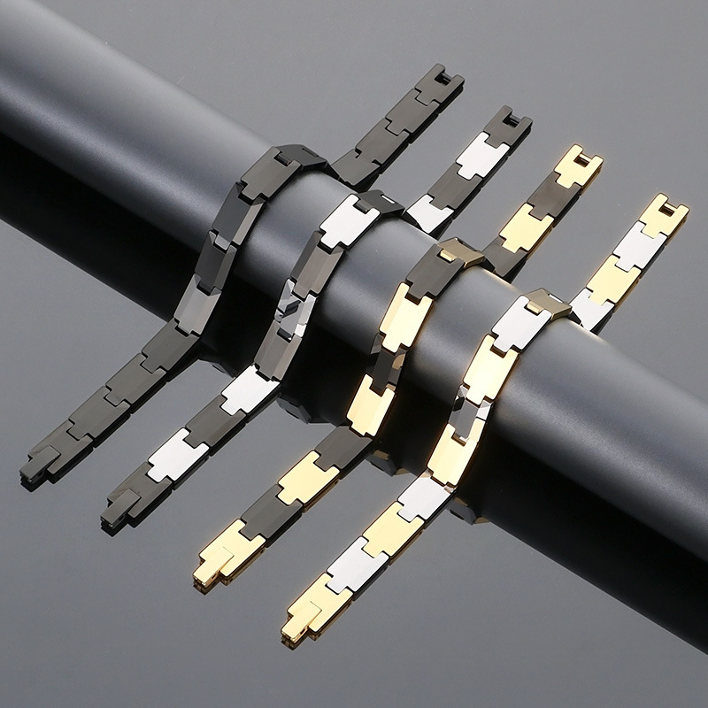 tungstain Cruach Bracelet, le Dubh + Maighnéadach + Cloch, plátáilte, jewelry faisin & do fear, dathanna níos mó le haghaidh rogha, Fad Thart 7.9 Inse, Díolta De réir PC