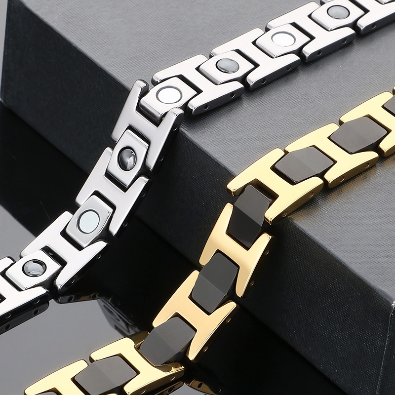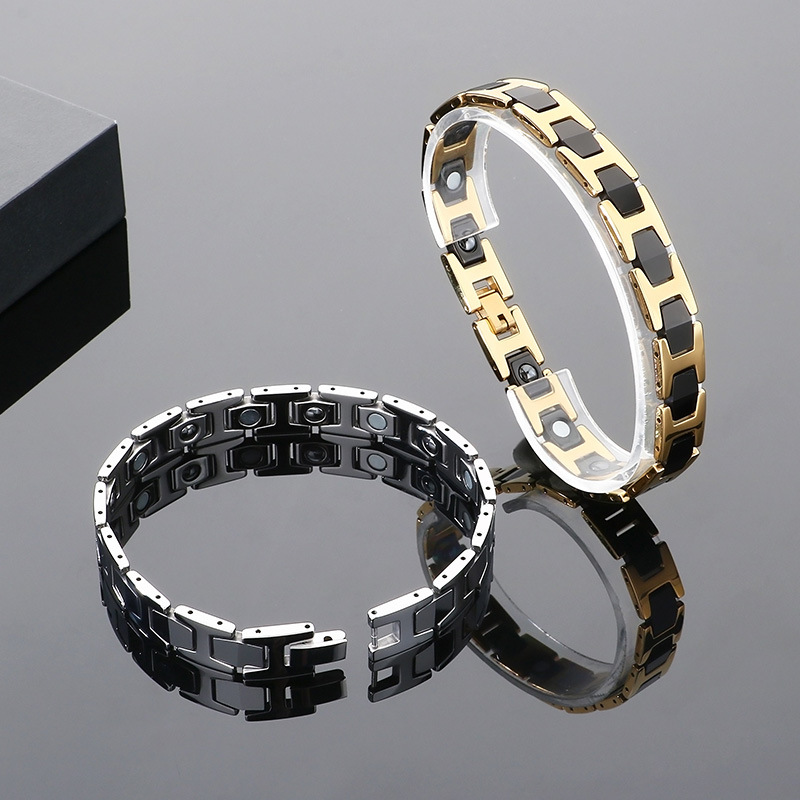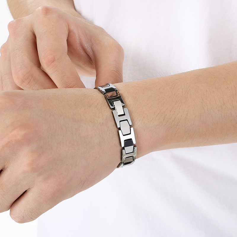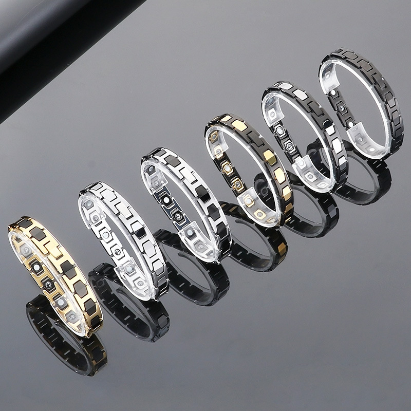 tungstain Cruach Bracelet, le Dubh + Maighnéadach + Cloch, plátáilte, jewelry faisin & do fear, dathanna níos mó le haghaidh rogha, Fad Thart 8.5 Inse, Díolta De réir PC