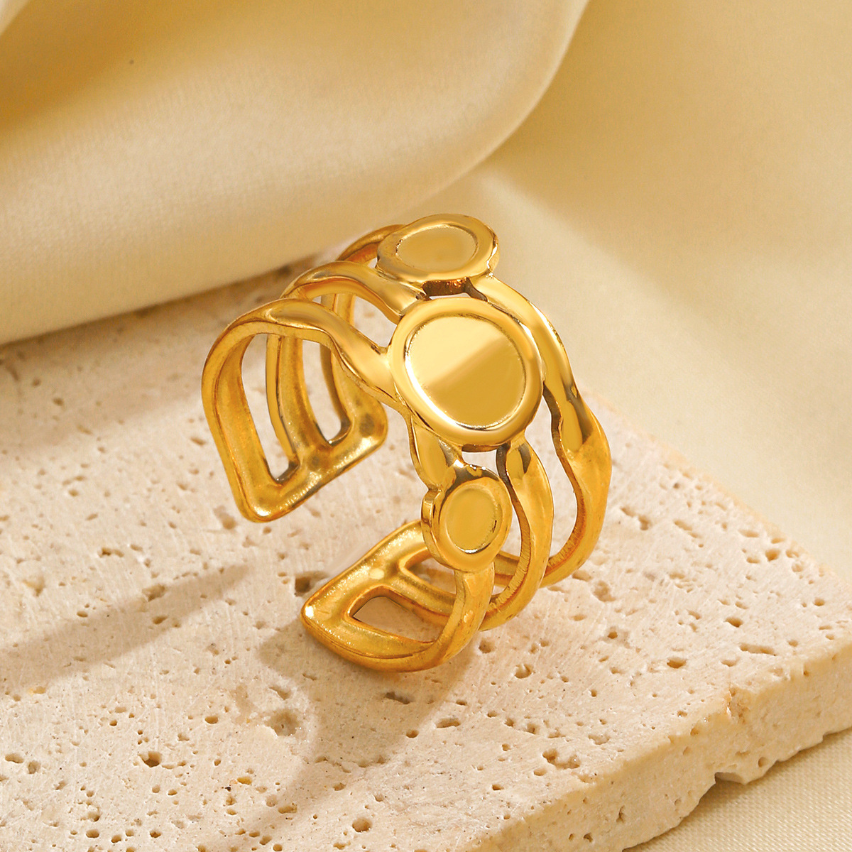 Prst prsten od inoxa, 304 nehrđajućeg čelika, pozlaćen, modni nakit & za žene & šupalj, zlatan, Prodano By PC