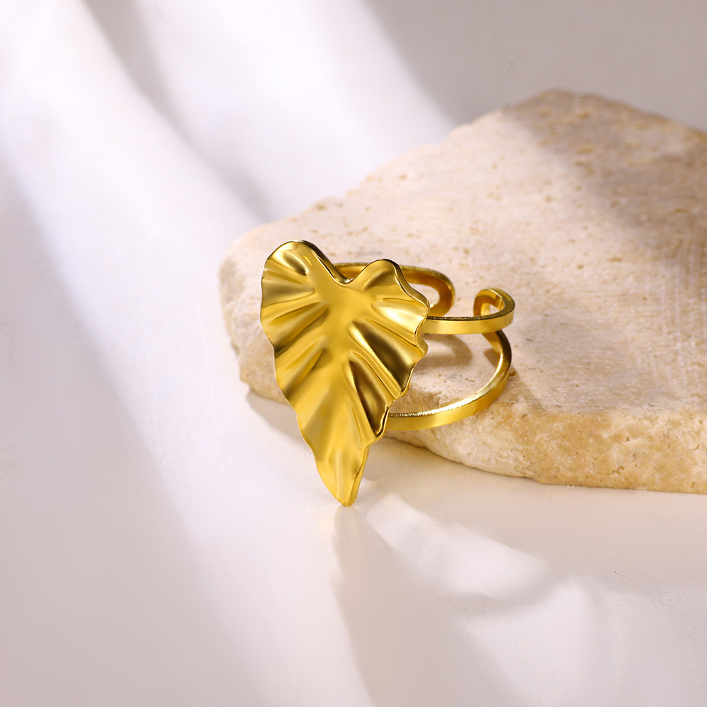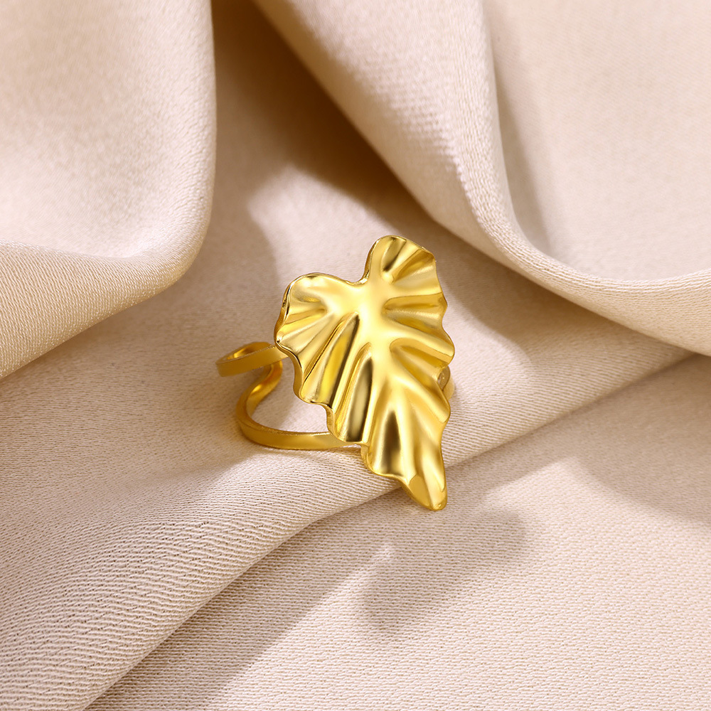 Prst prsten od inoxa, 304 nehrđajućeg čelika, List, pozlaćen, modni nakit & za žene, više boja za izbor, Prodano By PC