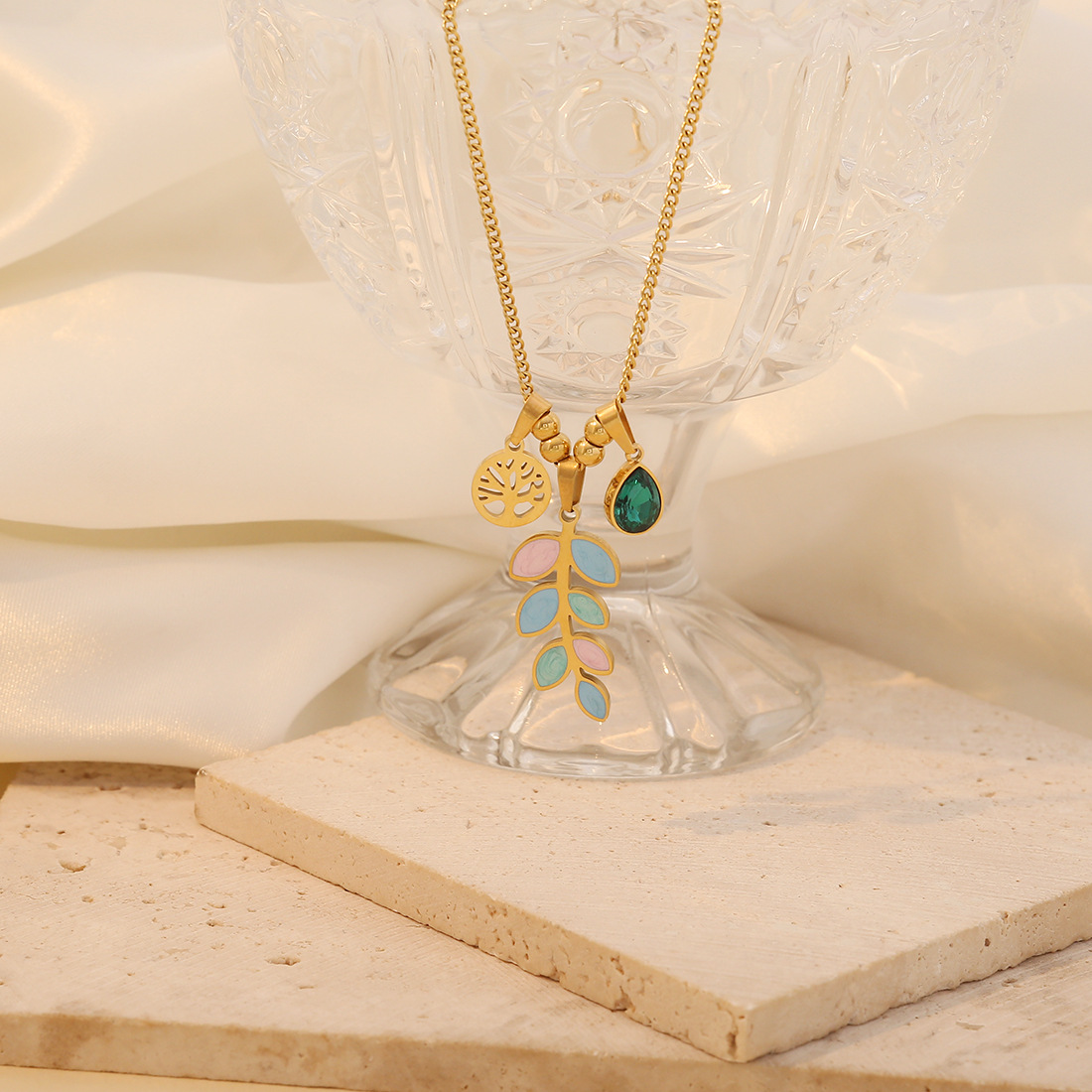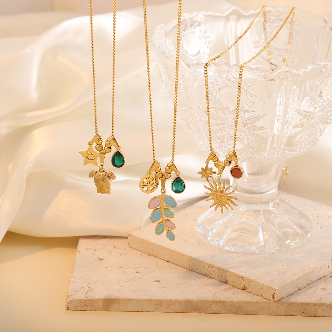Nehrđajućeg čelika, nakit ogrlice, 304 nehrđajućeg čelika, pozlaćen, različitih stilova za izbor & za žene & emajl & s Rhinestone, zlatan, Prodano By PC