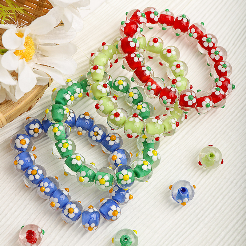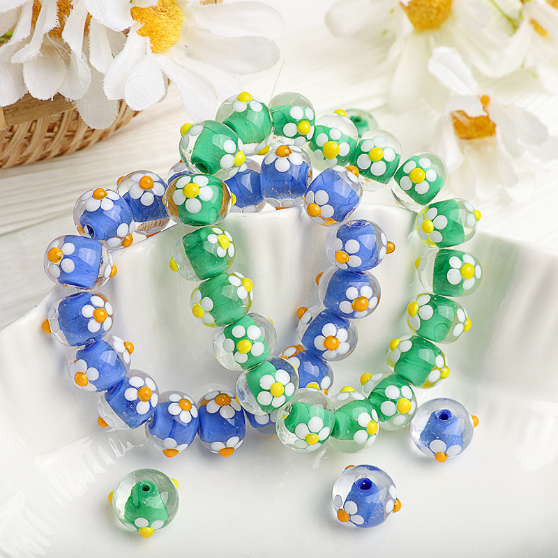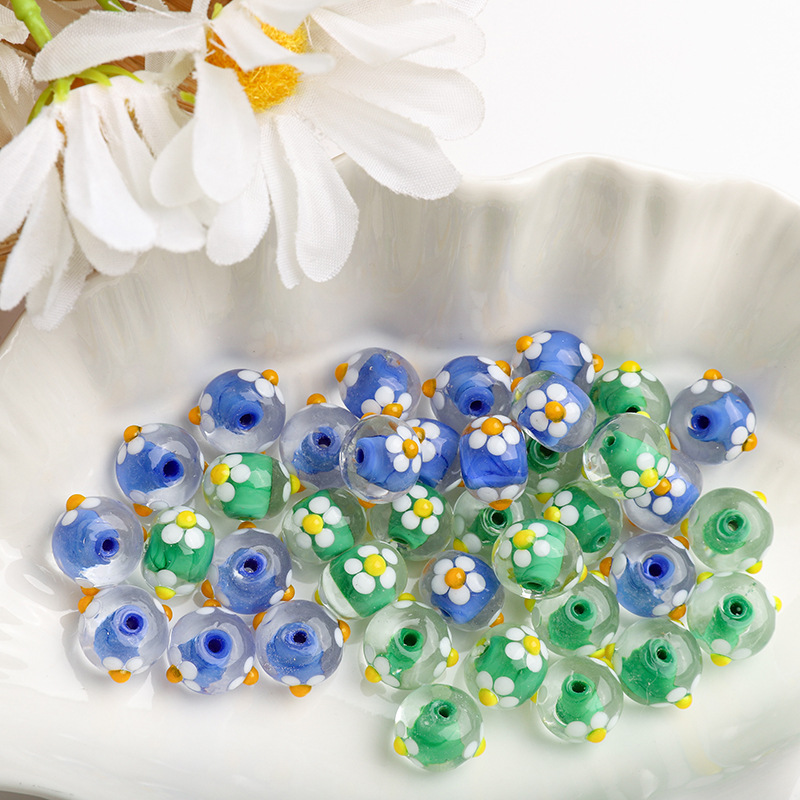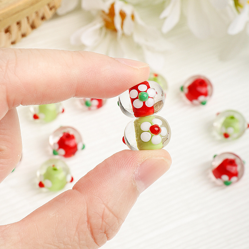 Moda Staklene perle, Staklo, možete DIY & s cvjetnim uzorkom, više boja za izbor, 14x14mm, Prodano By PC