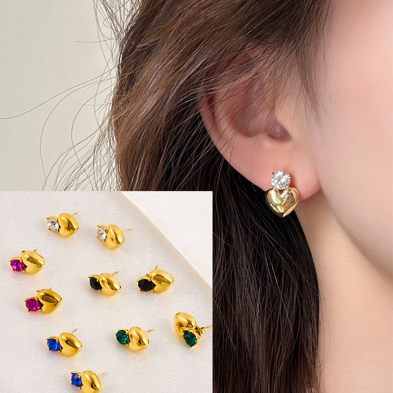 Nehrđajućeg čelika Stud Naušnice, Nehrđajući čelik, Srce, pozlaćen, više boja za izbor, 7mm, 12Parovi/Lot, Prodano By Lot