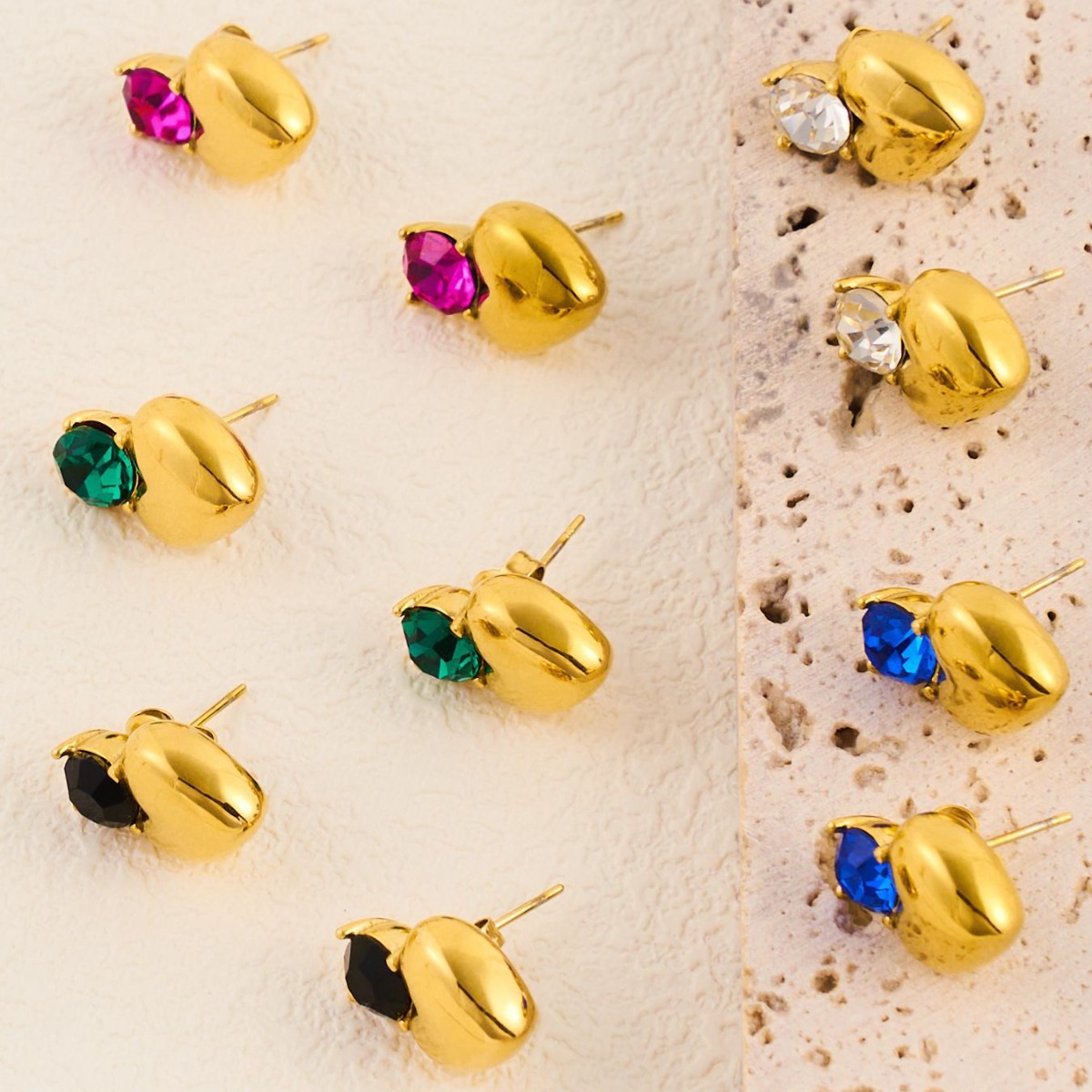 Nehrđajućeg čelika Stud Naušnice, 304 nehrđajućeg čelika, pozlaćen, modni nakit, više boja za izbor, 12Parovi/Torba, Prodano By Torba