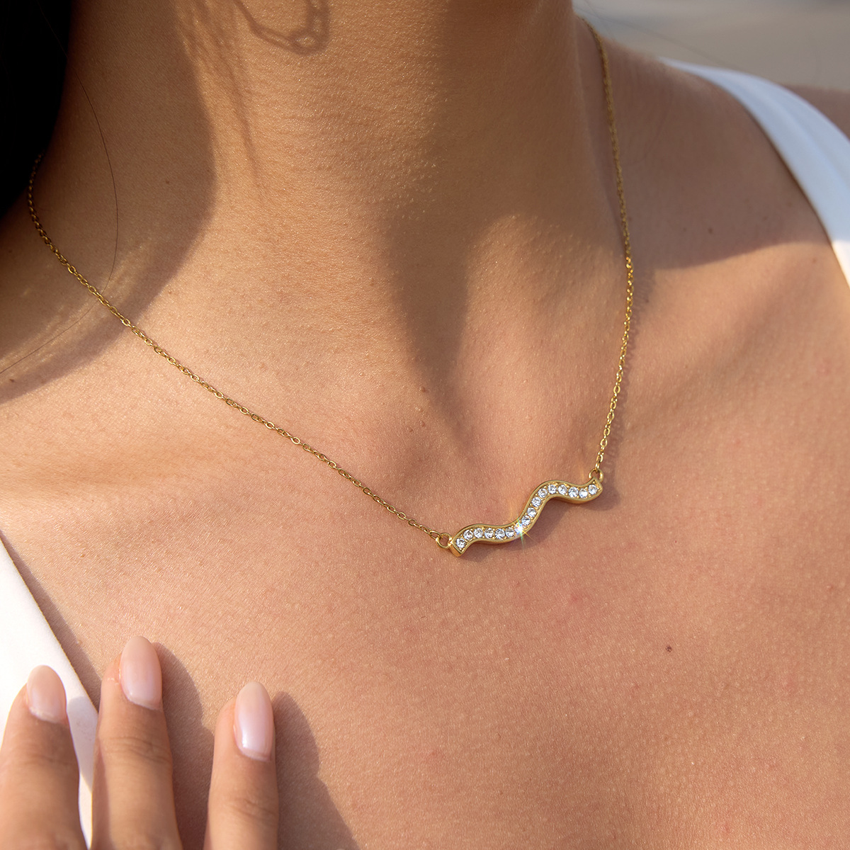 Nehrđajućeg čelika, nakit ogrlice, Nehrđajući čelik, 18K pozlaćeno, modni nakit & za žene & s Rhinestone, Prodano Per Približno 45 cm Strand