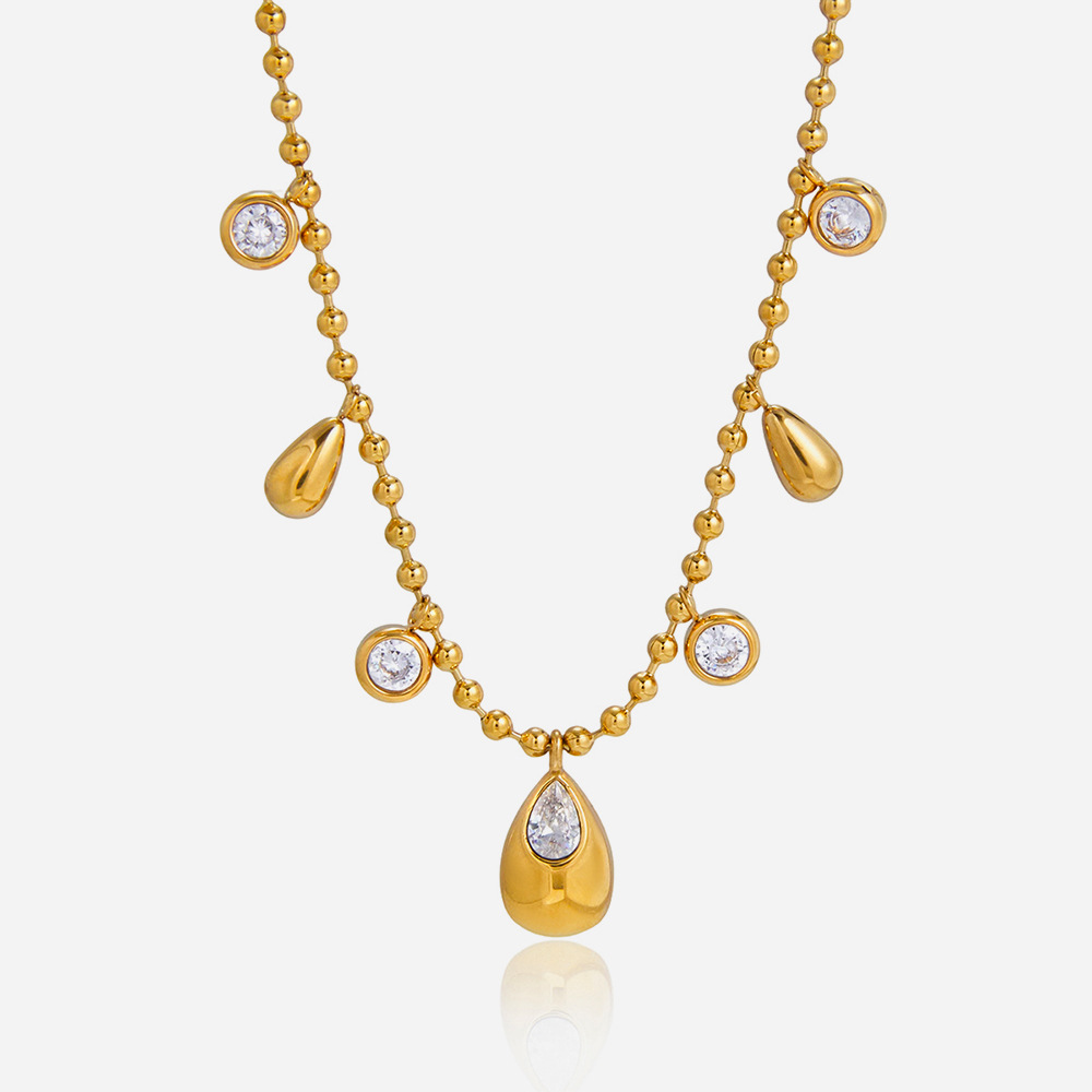 Nehrđajućeg čelika, nakit ogrlice, Nehrđajući čelik, s Kubni cirkonij, 18K pozlaćeno, modni nakit & Lopta lanac & za žene, Prodano Per Približno 40 cm Strand