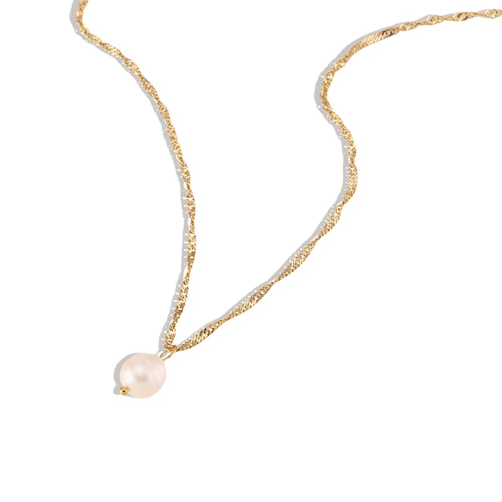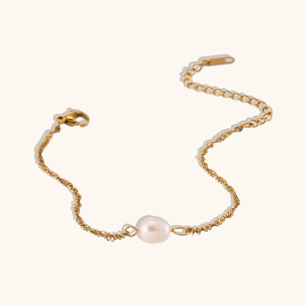 1:Water Wave Chain Freshwater Pearl Bracelet2:Simple Water Wave Chain Freshwater Pearl Pendant Necklace