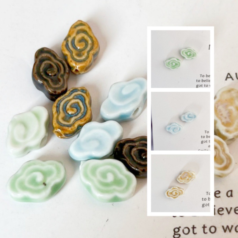 Porculan Nakit perle, Oblak, možete DIY, više boja za izbor, 17x11x6mm, Rupa:Približno 2.5mm, Prodano By PC