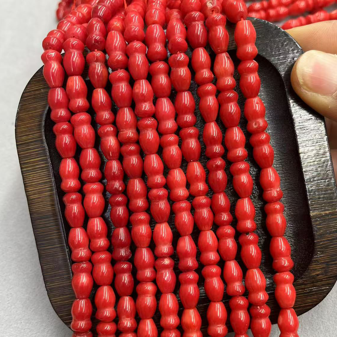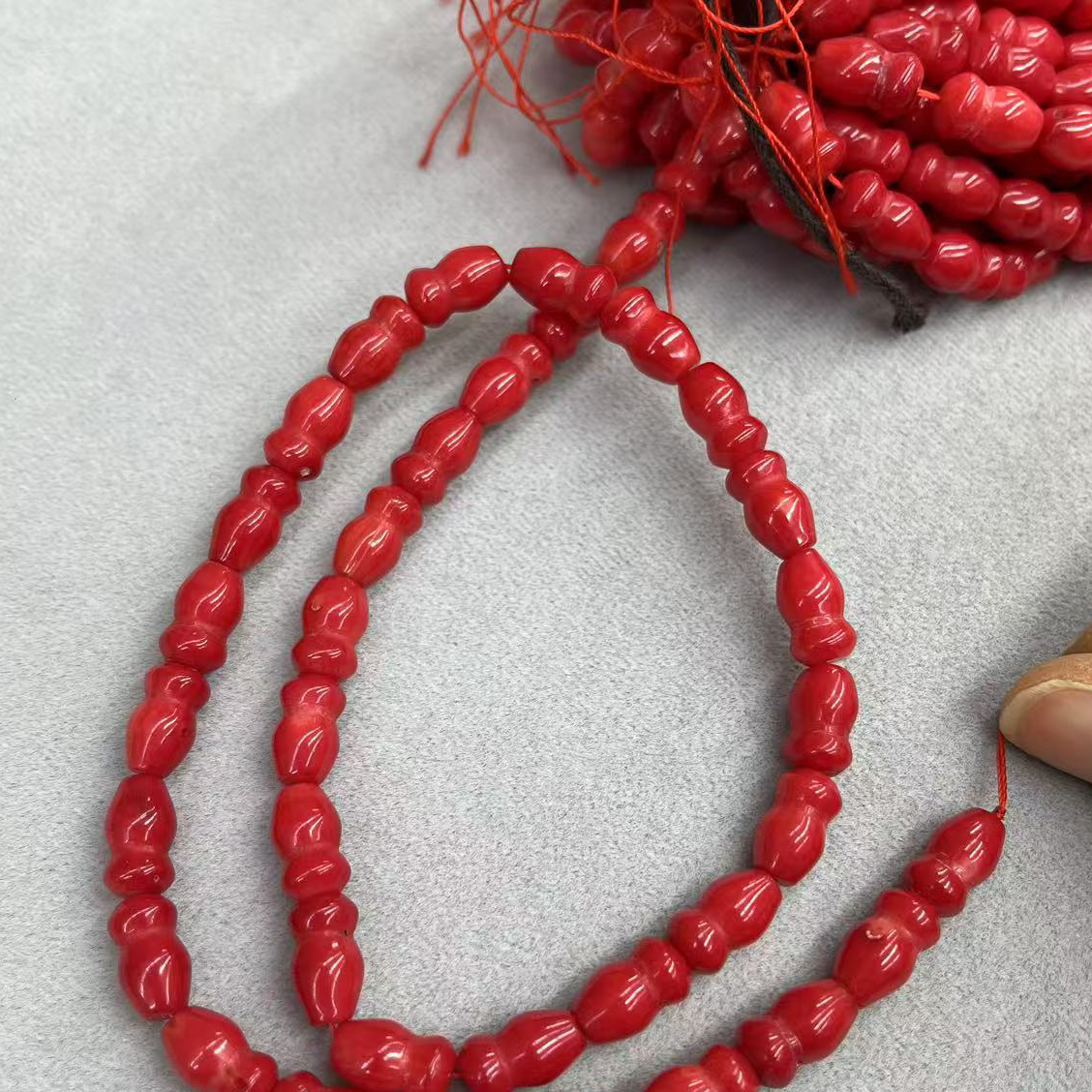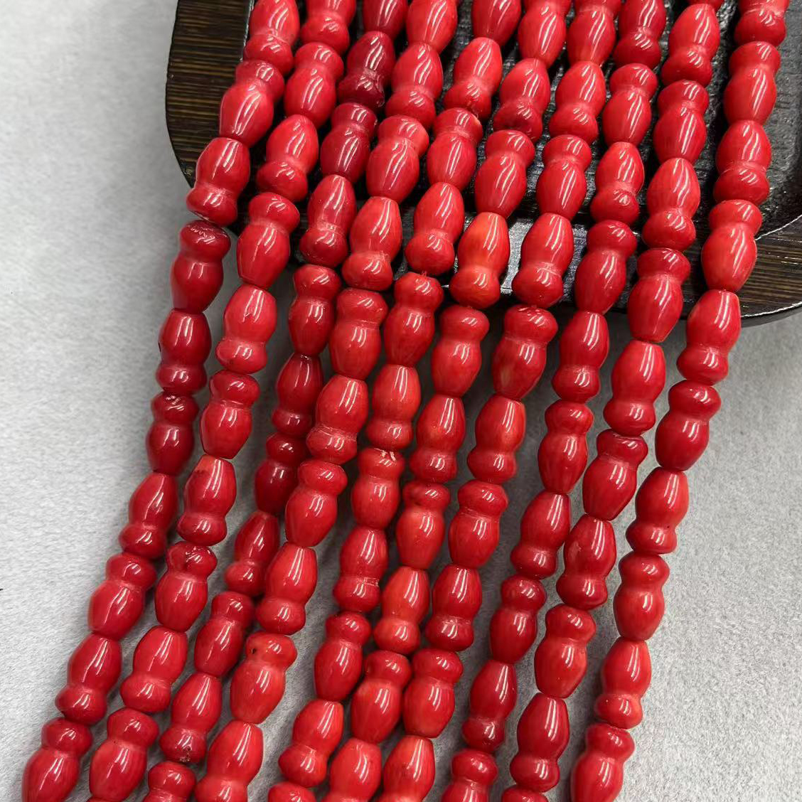Prirodni Coral perle, Calabash, možete DIY, crven, 7x12mm, Približno 38računala/Strand, Prodano By Strand