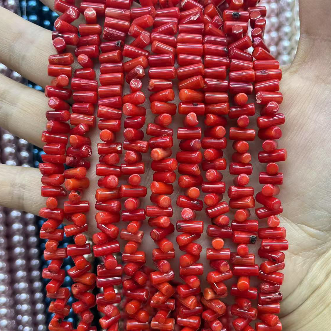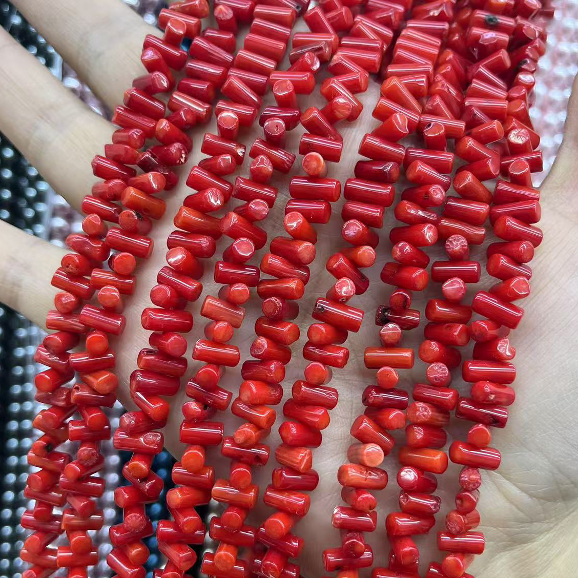 Prirodni Coral perle, Kolona, možete DIY, crven, 4x8mm, Približno 102računala/Strand, Prodano By Strand