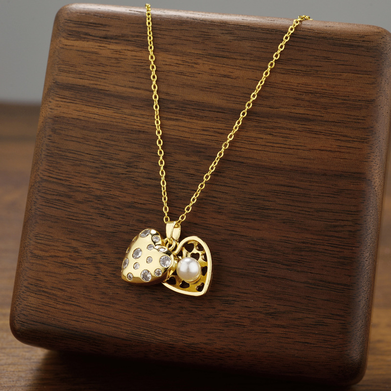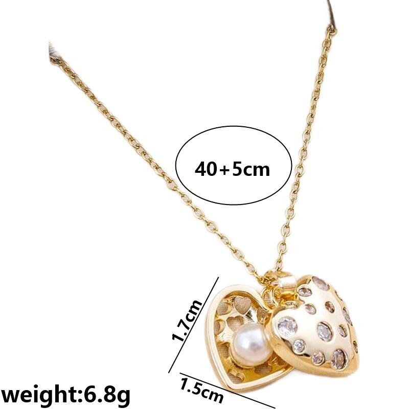 Titanium Steel Ogrlica, Titanium Čelik, s Plastična Pearl, s 5cm Produžetak lanac, Srce, pozlaćen, ovalni lanac & za žene & s kubni cirkonij, više boja za izbor, 15x17mm, Prodano Per Približno 40 cm Strand
