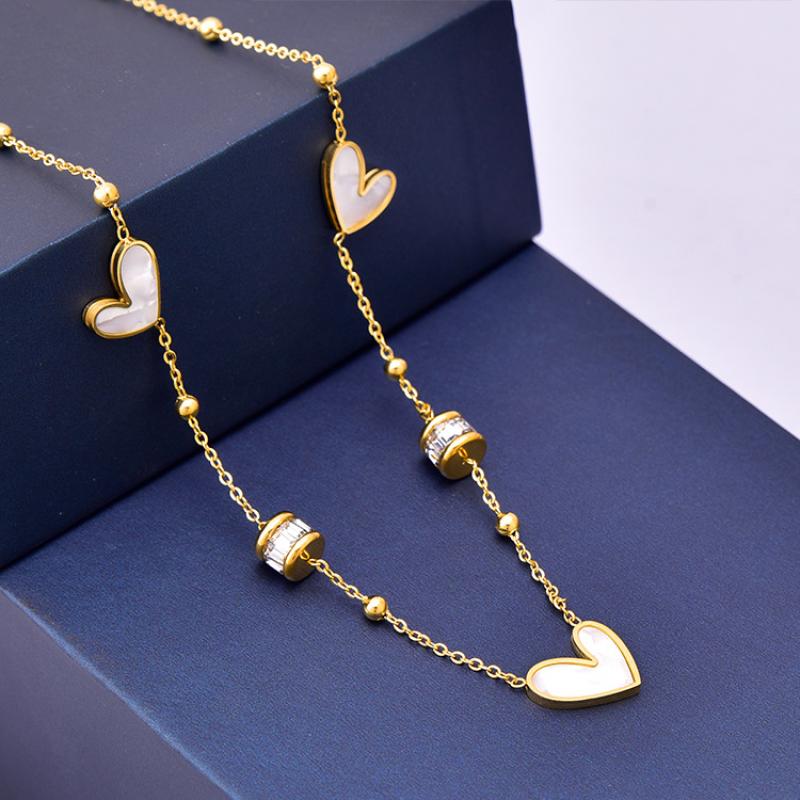 Titanium Steel Ogrlica, Titanium Čelik, s Bijela Shell, s 5cm Produžetak lanac, Srce, zlatna boja pozlaćen, prilagodljiv & micro utrti kubni cirkonij & za žene, 14x12mm, Prodano Per Približno 41 cm Strand