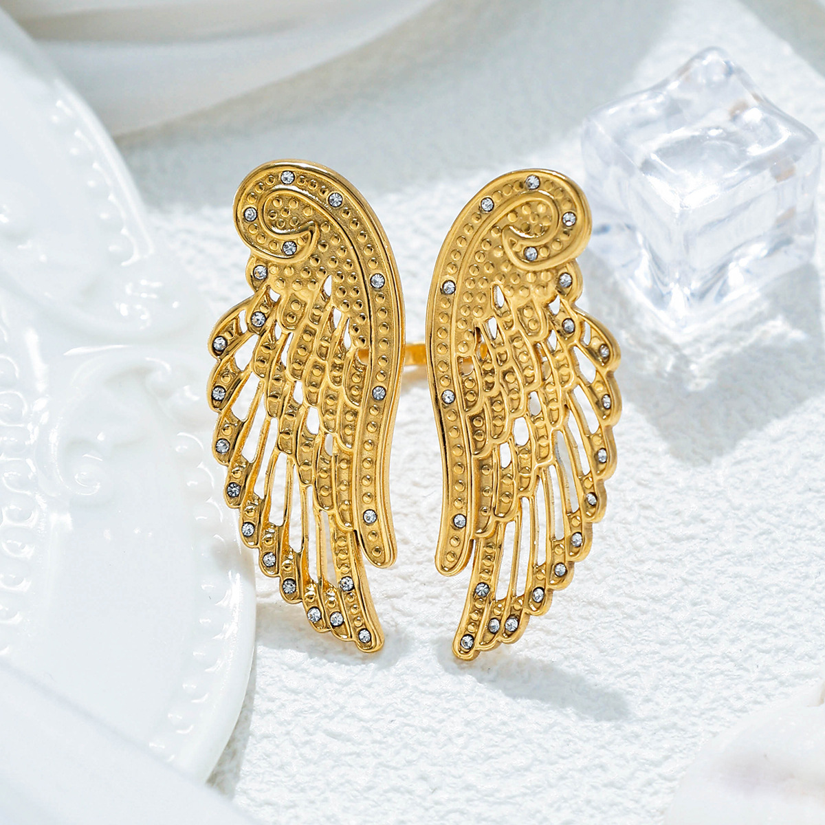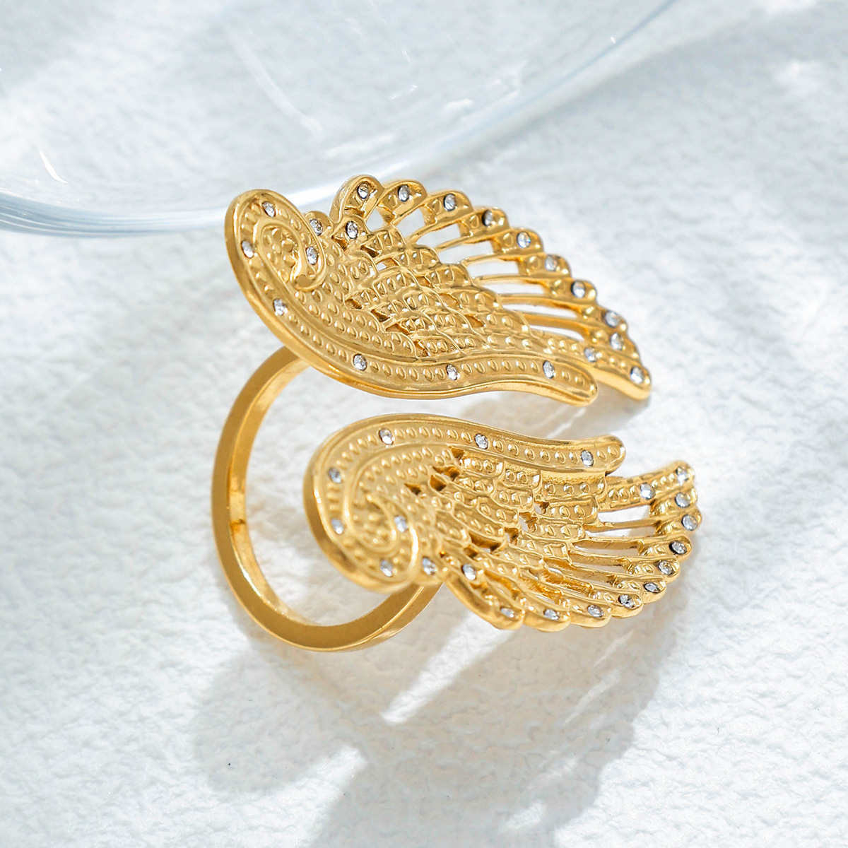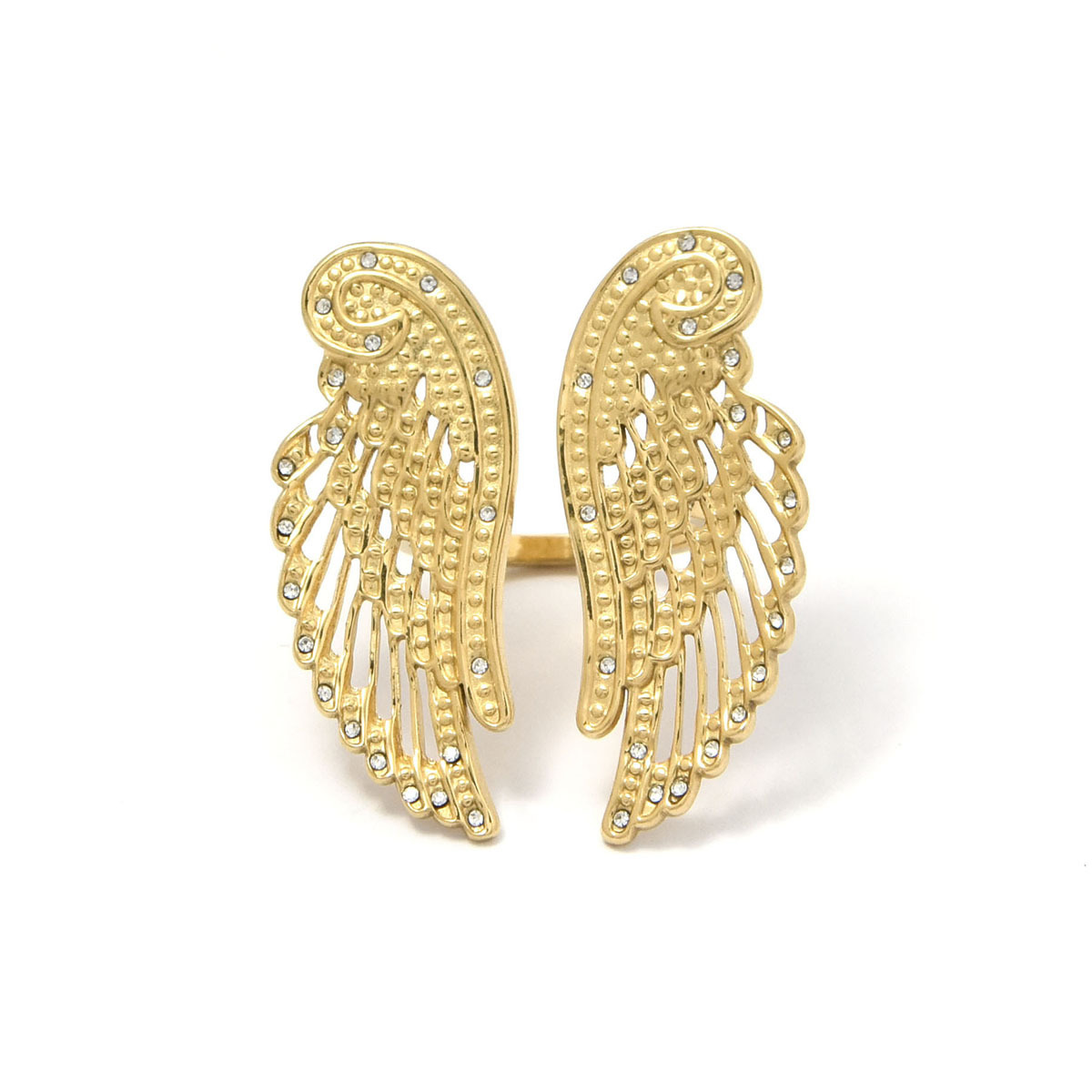 nehrđajućeg Čelik vještački dijamant Finger Ring, 304 nehrđajućeg čelika, zlatna boja pozlaćen, za žene & s Rhinestone & šupalj, Prodano By PC