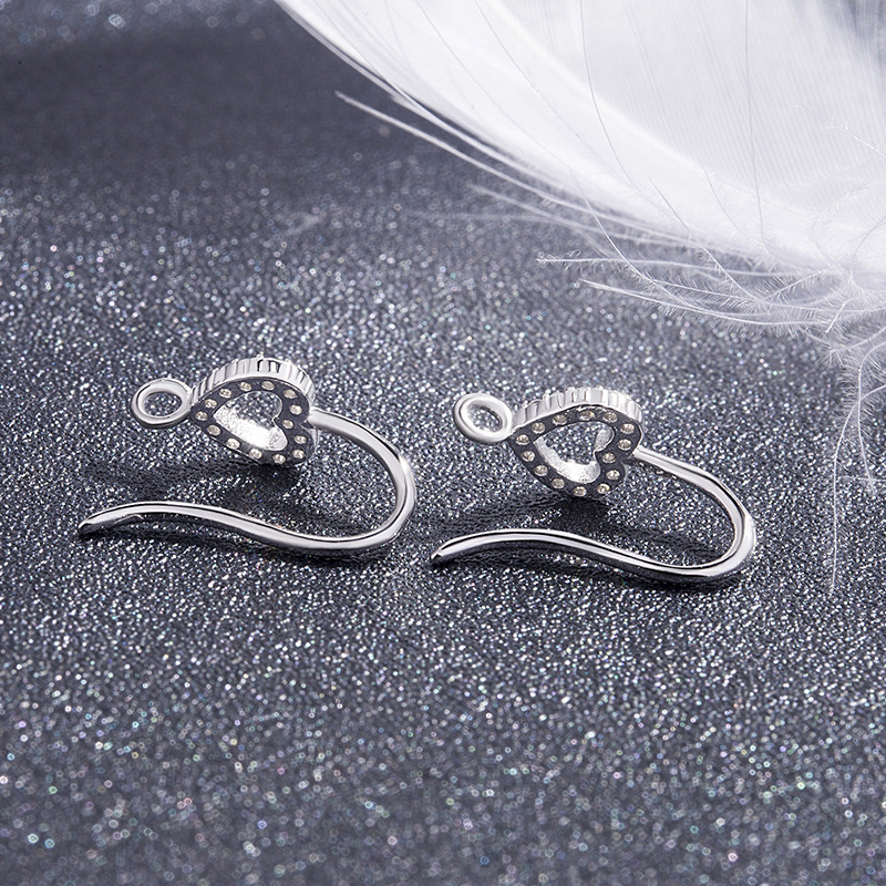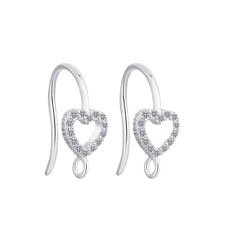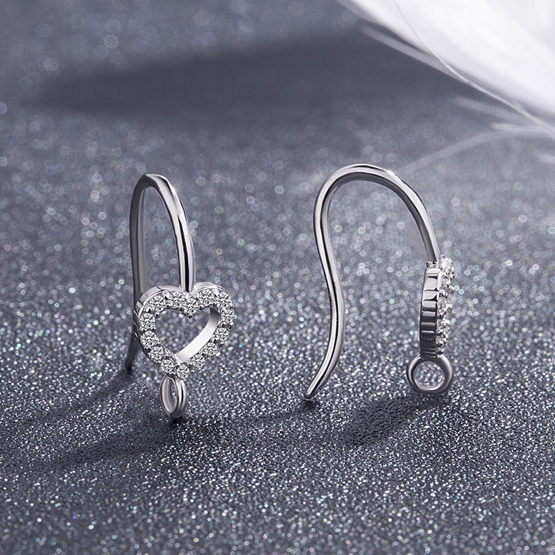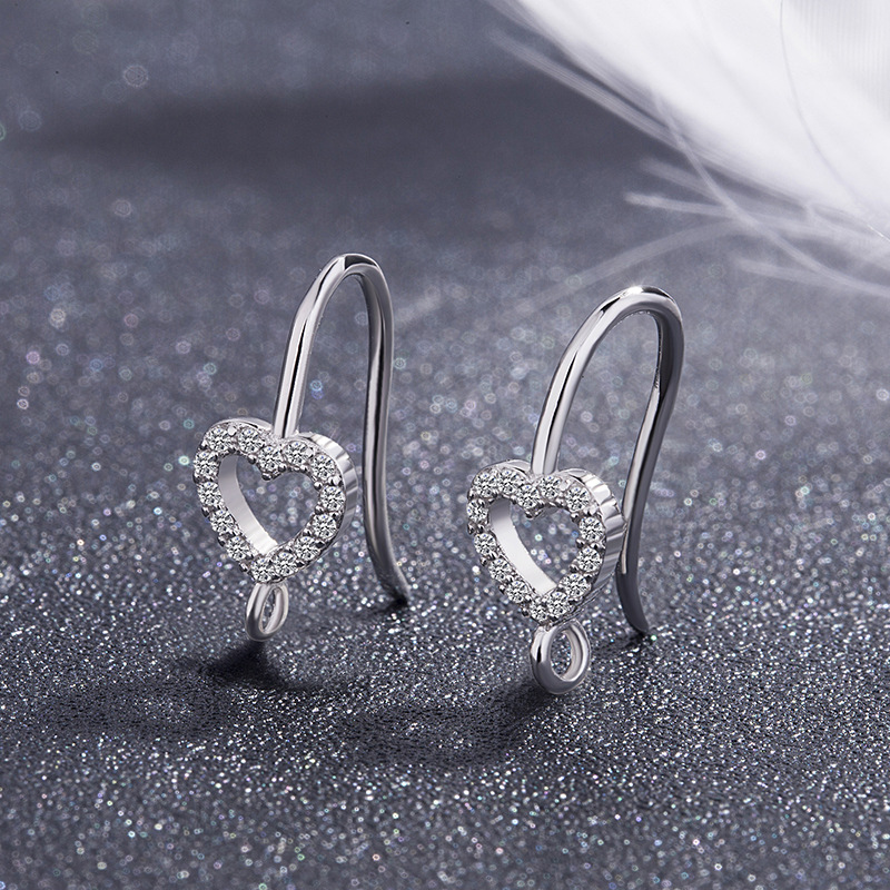 925 ezüst fülbevaló csepp komponens, Szív, DIY & különböző stílusokat a választás & mikro egyengetni cirkónia, earring drop component length 15-20mm, Által értékesített pár