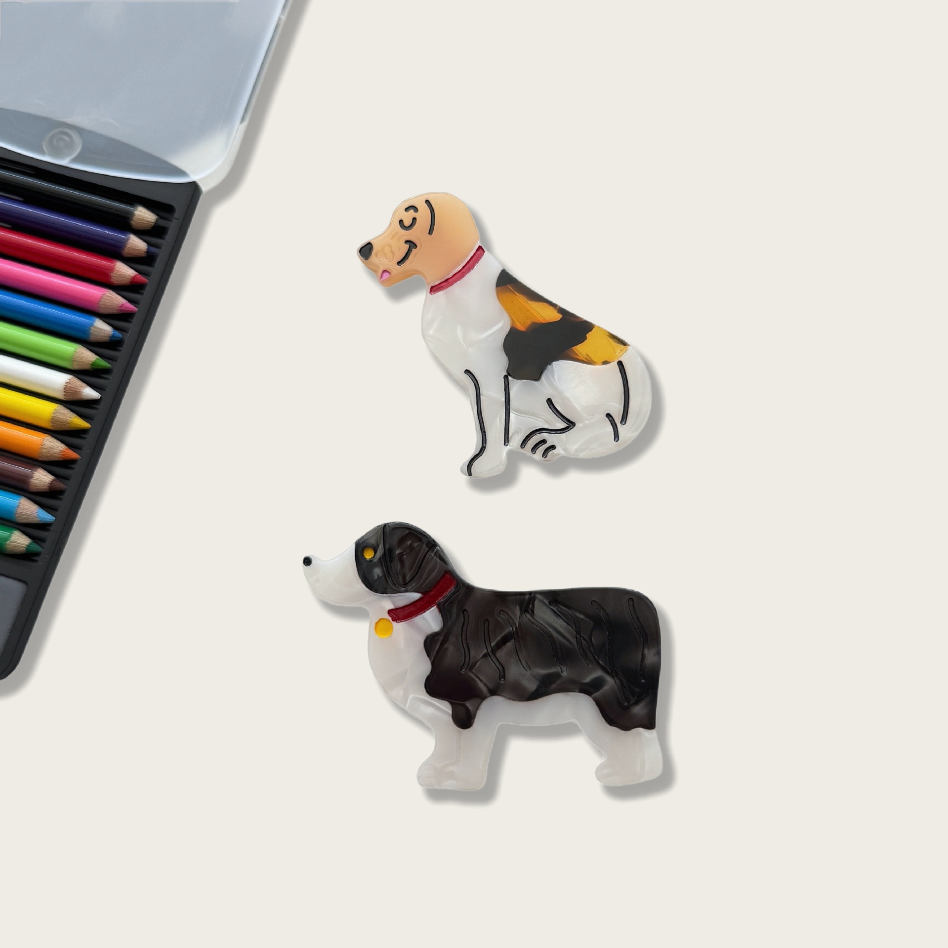 1:Border collie 56x40mm2:Beagle 34x49mm