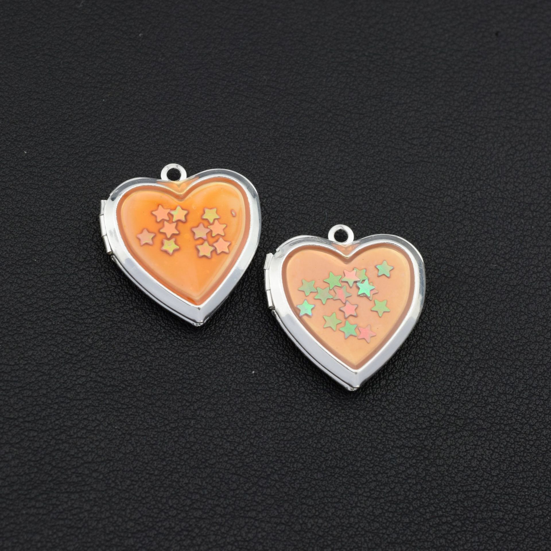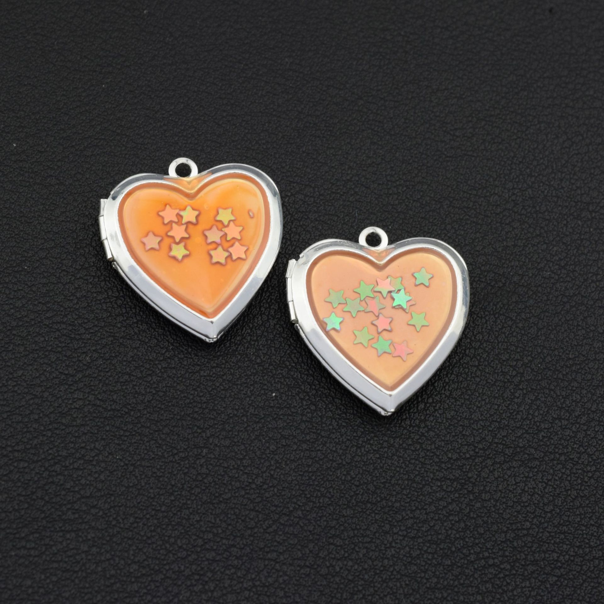 rozsdamentes acél Szív medálok, 304 rozsdamentes acél, -val Üveg, ezüst színű bevonattal, DIY, kevert színek, Által értékesített PC