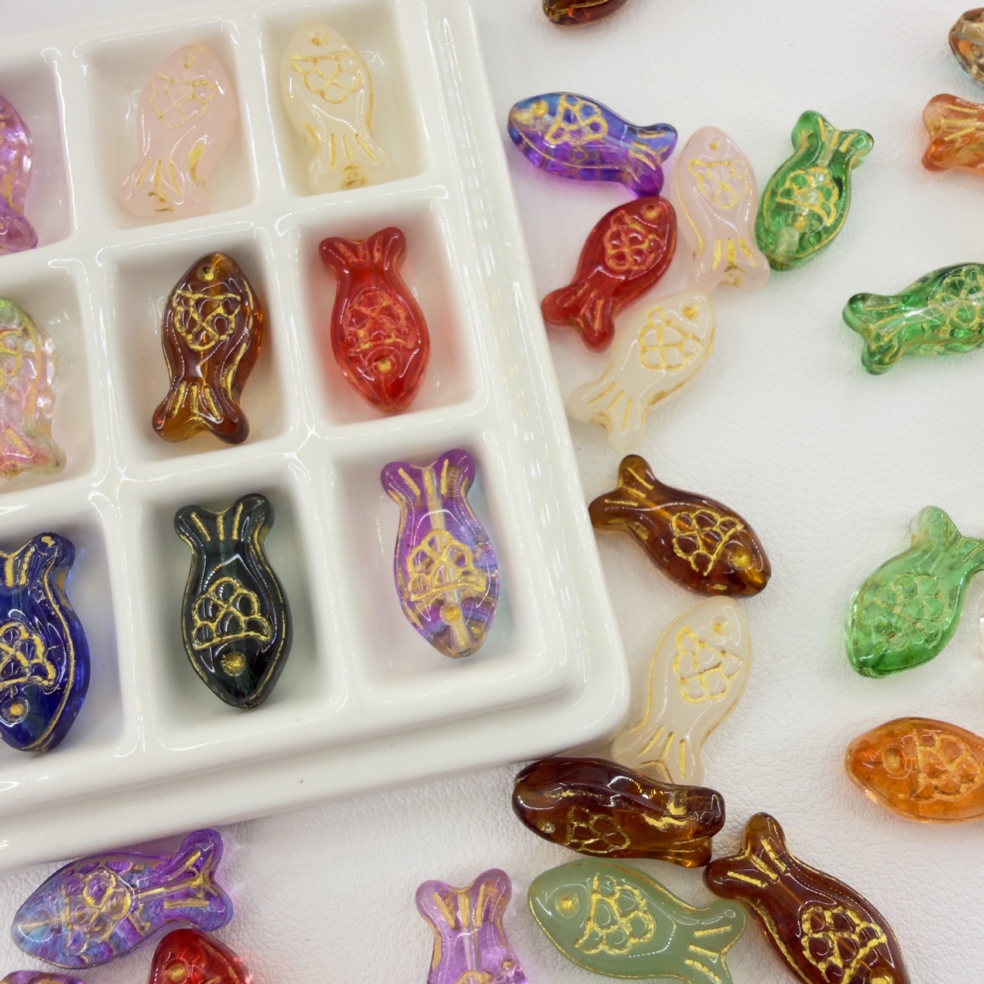 Animal Lampwork Gyöngyök, Hal, DIY, több színt a választás, 21x10.50x6.50mm, Lyuk:Kb 1mm, 100PC-k/Bag, Által értékesített Bag