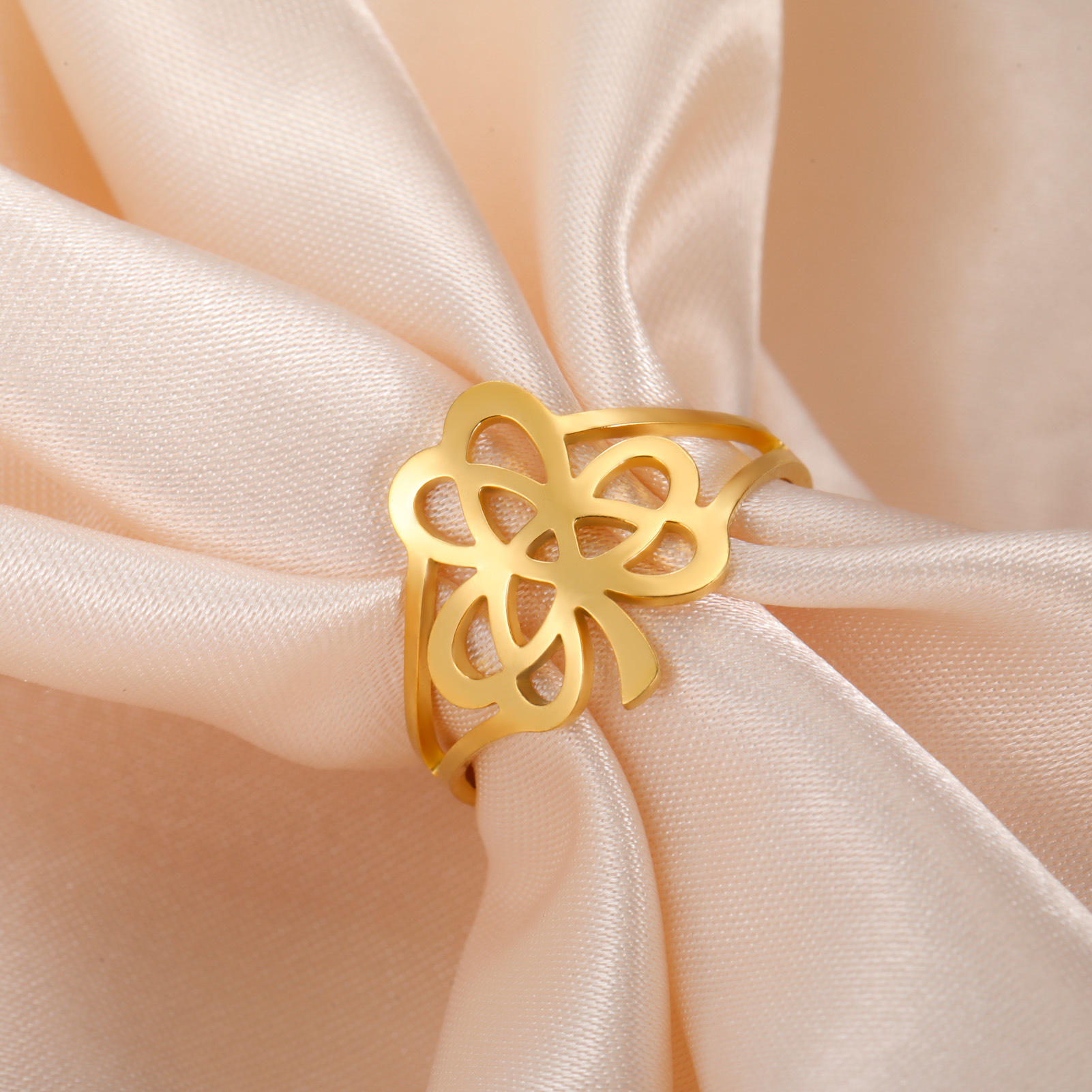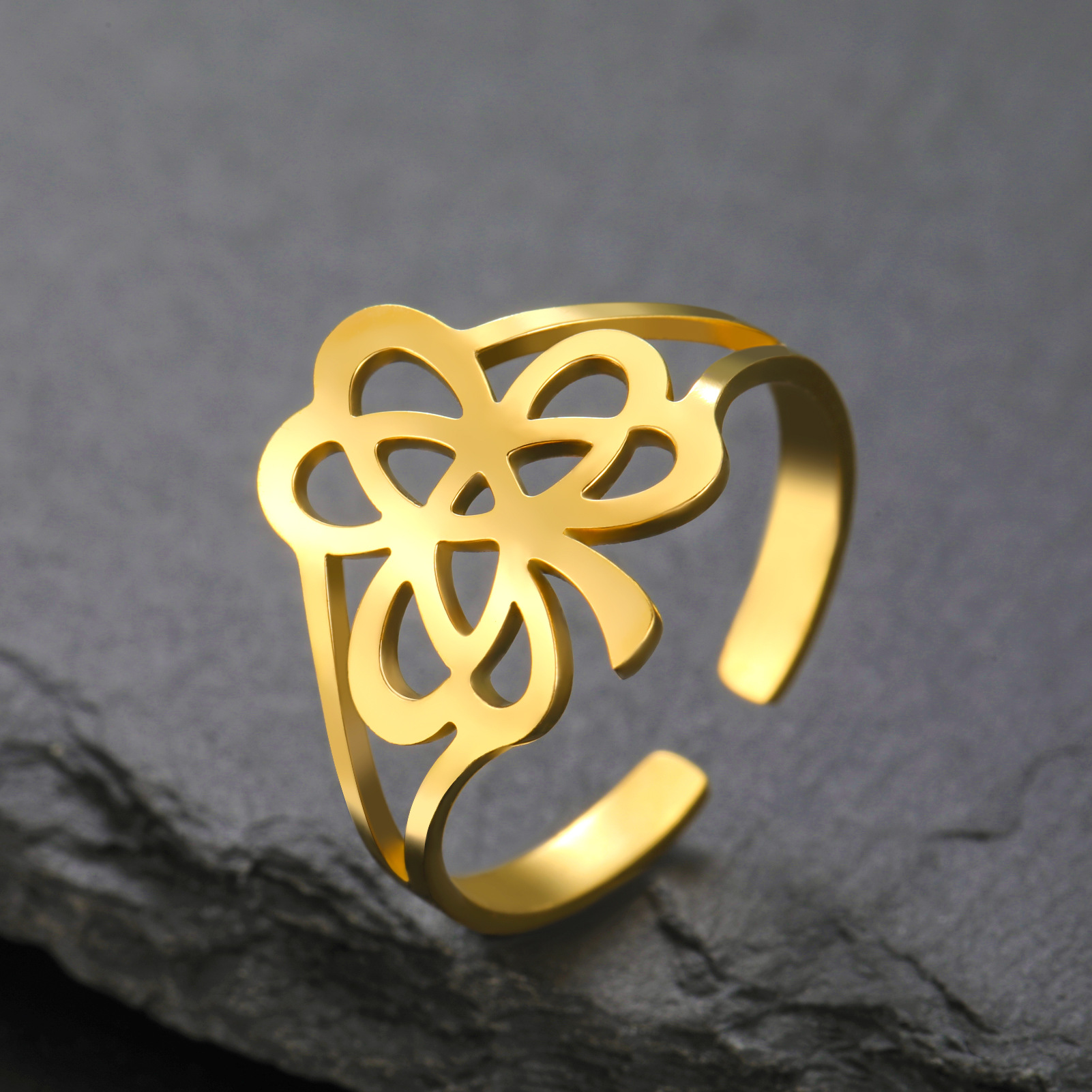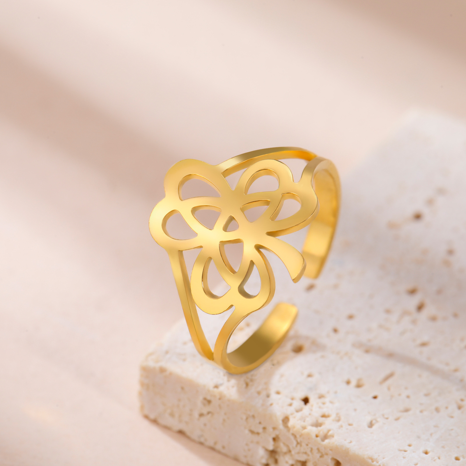Rozsdamentes acél Finger Ring, 304 rozsdamentes acél, -val Opál, Virág, galvanizált, divat ékszerek & különböző stílusokat a választás & a nő, aranysárga, Által értékesített PC