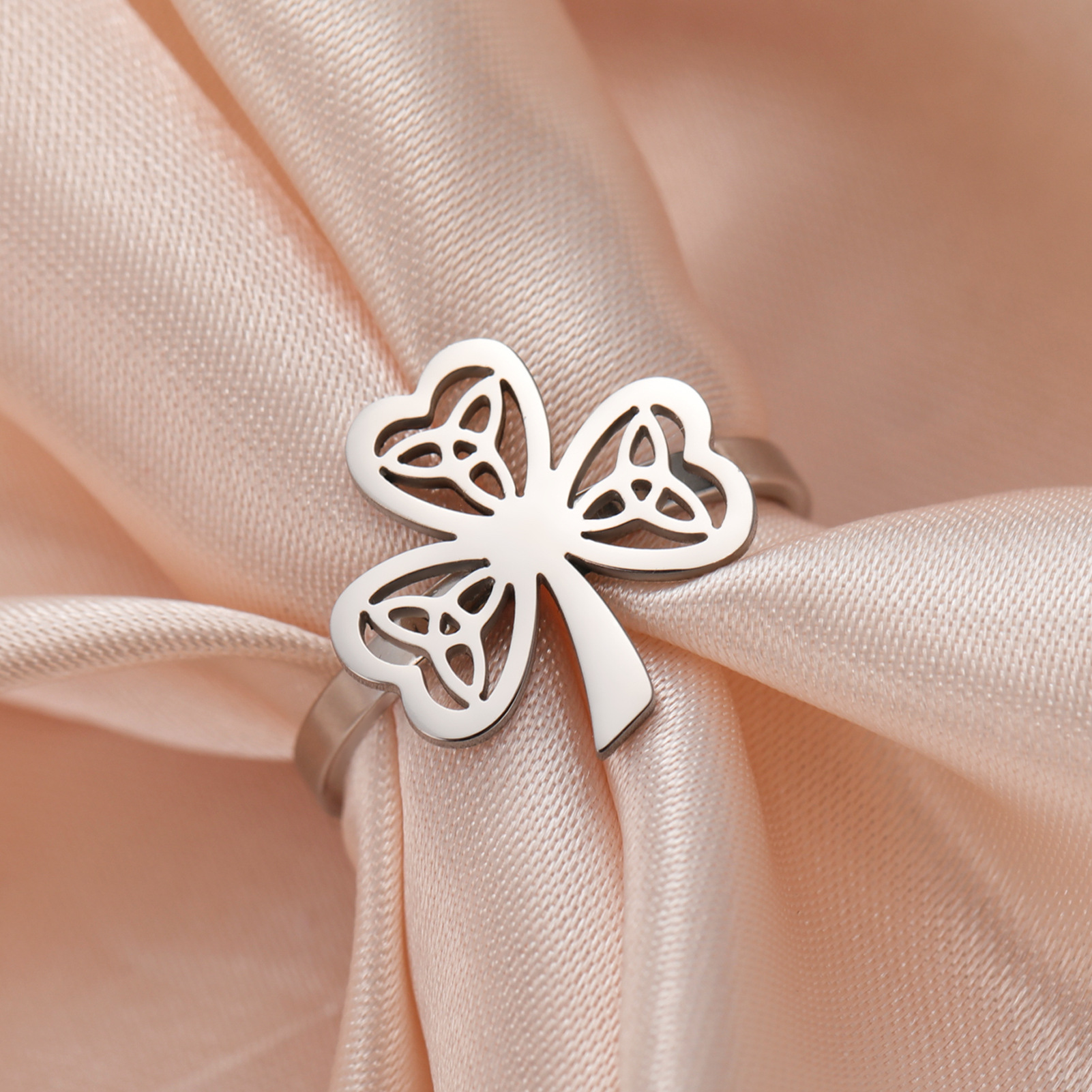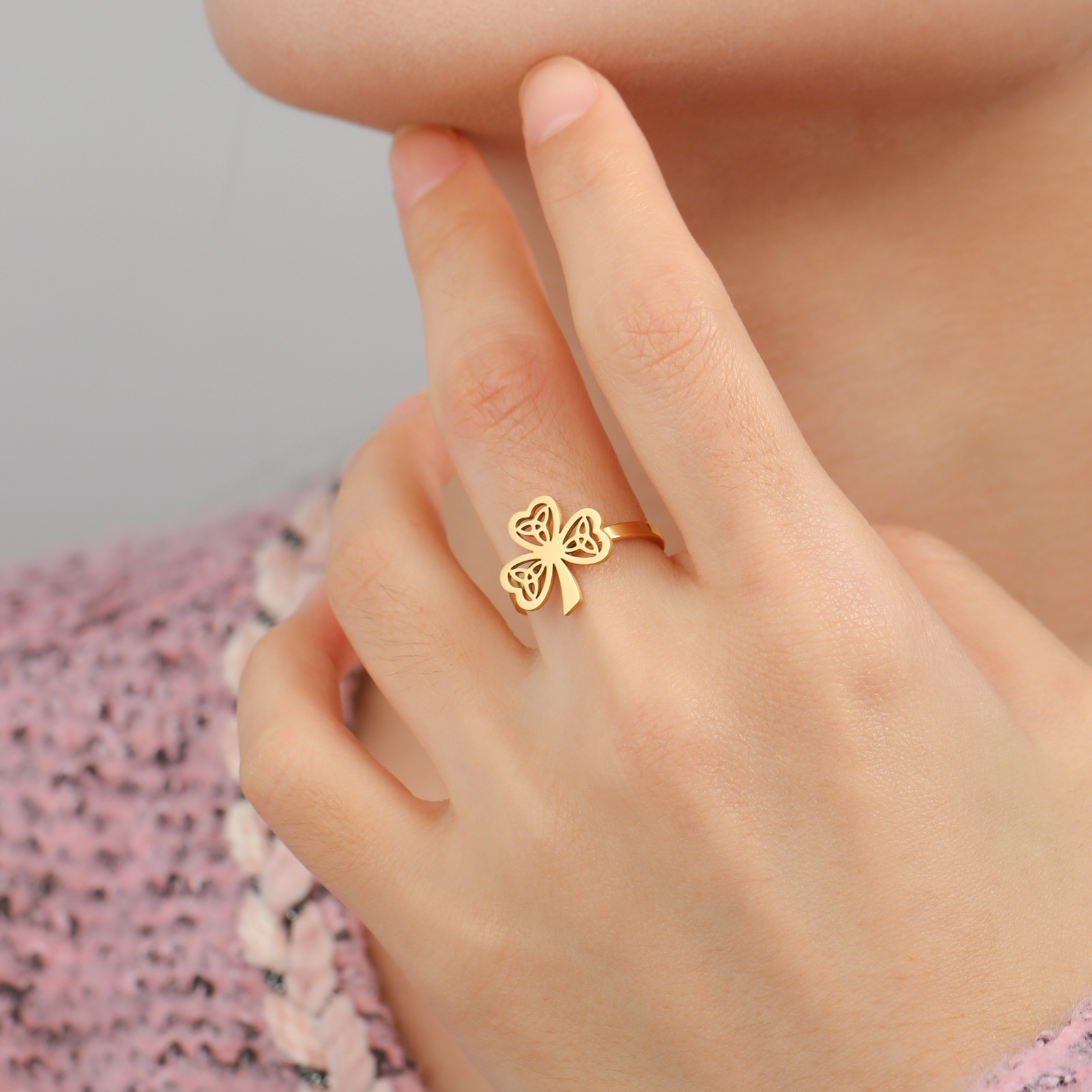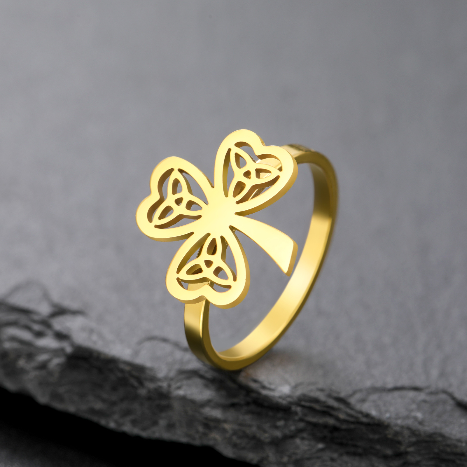 Rozsdamentes acél Finger Ring, 304 rozsdamentes acél, -val Opál, Virág, galvanizált, divat ékszerek & különböző stílusokat a választás & a nő, aranysárga, Által értékesített PC