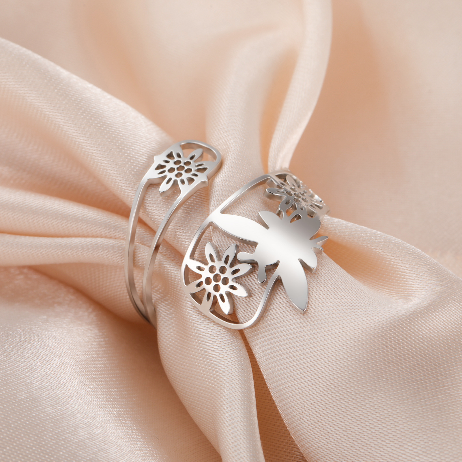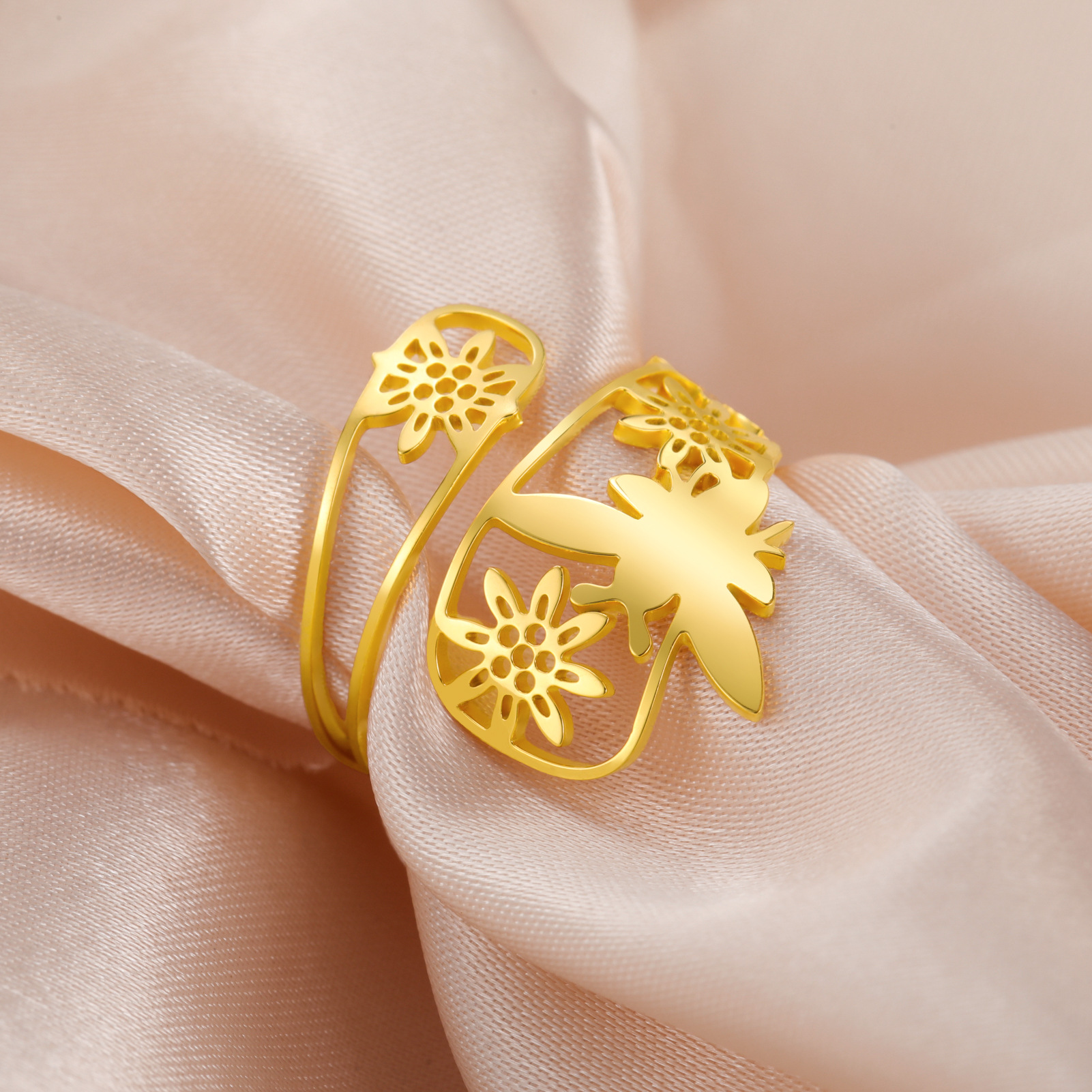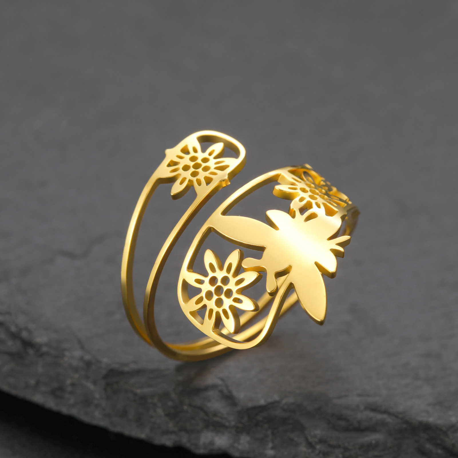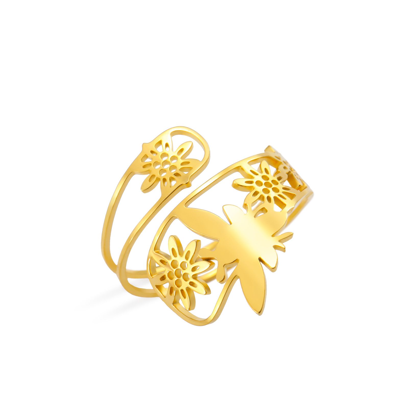 Rozsdamentes acél Finger Ring, 304 rozsdamentes acél, -val Opál, Virág, galvanizált, divat ékszerek & különböző stílusokat a választás & a nő, aranysárga, Által értékesített PC