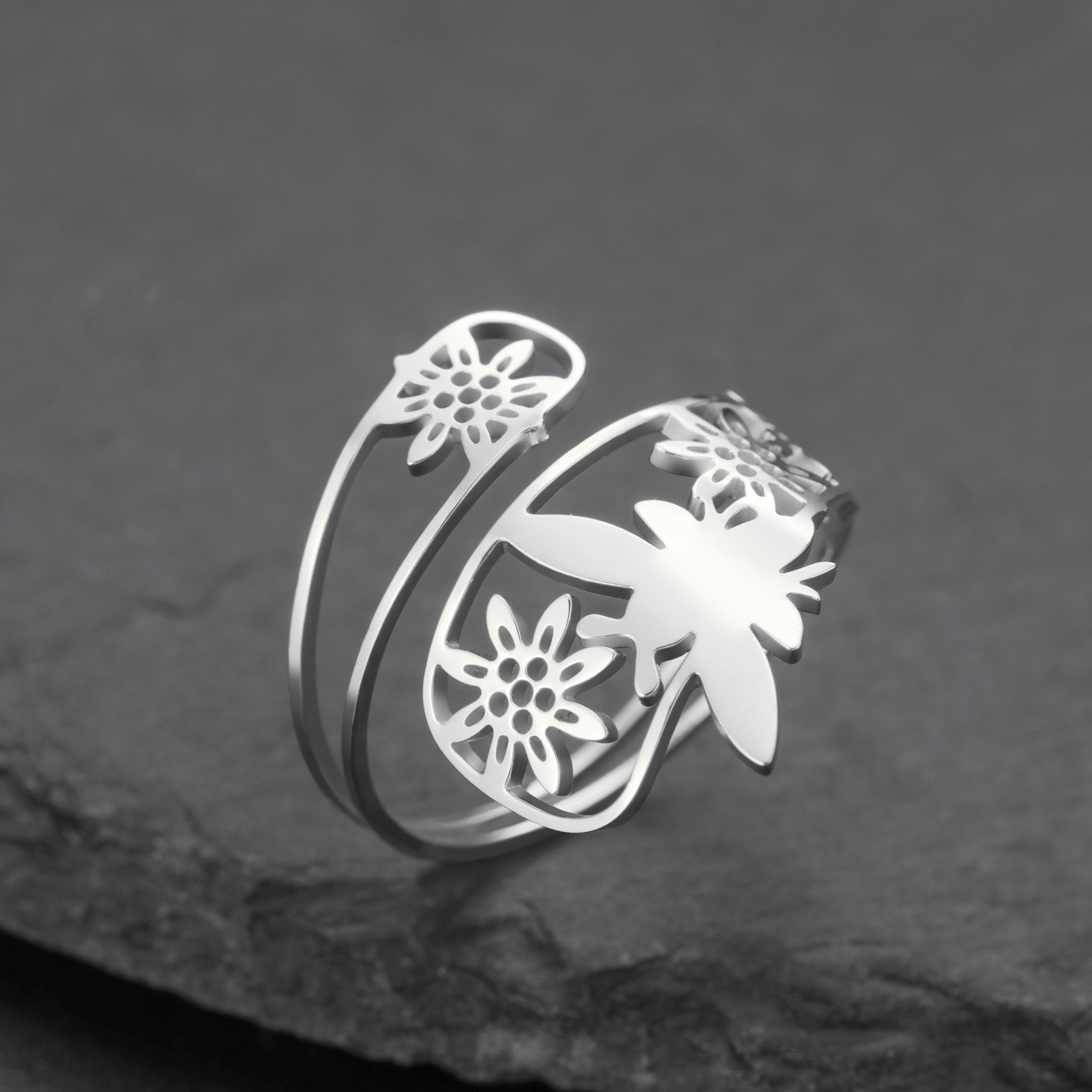 Rozsdamentes acél Finger Ring, 304 rozsdamentes acél, -val Természetes kő, Dinoszaurusz, ezüst színű bevonattal, divat ékszerek & különböző anyagok a választás, több színt a választás, Által értékesített PC