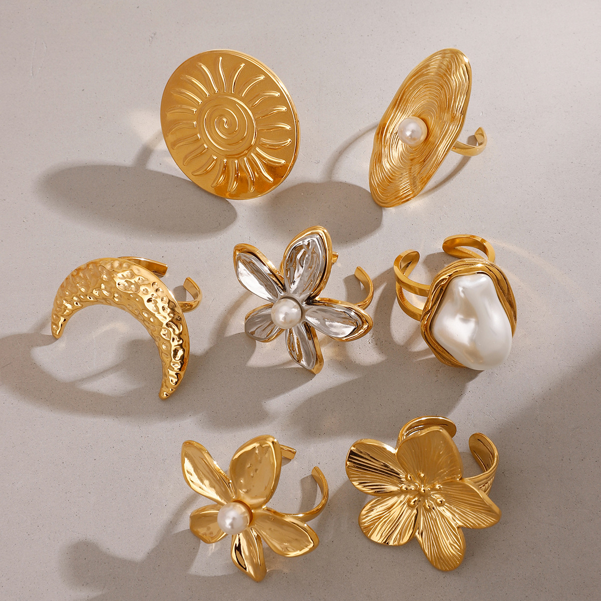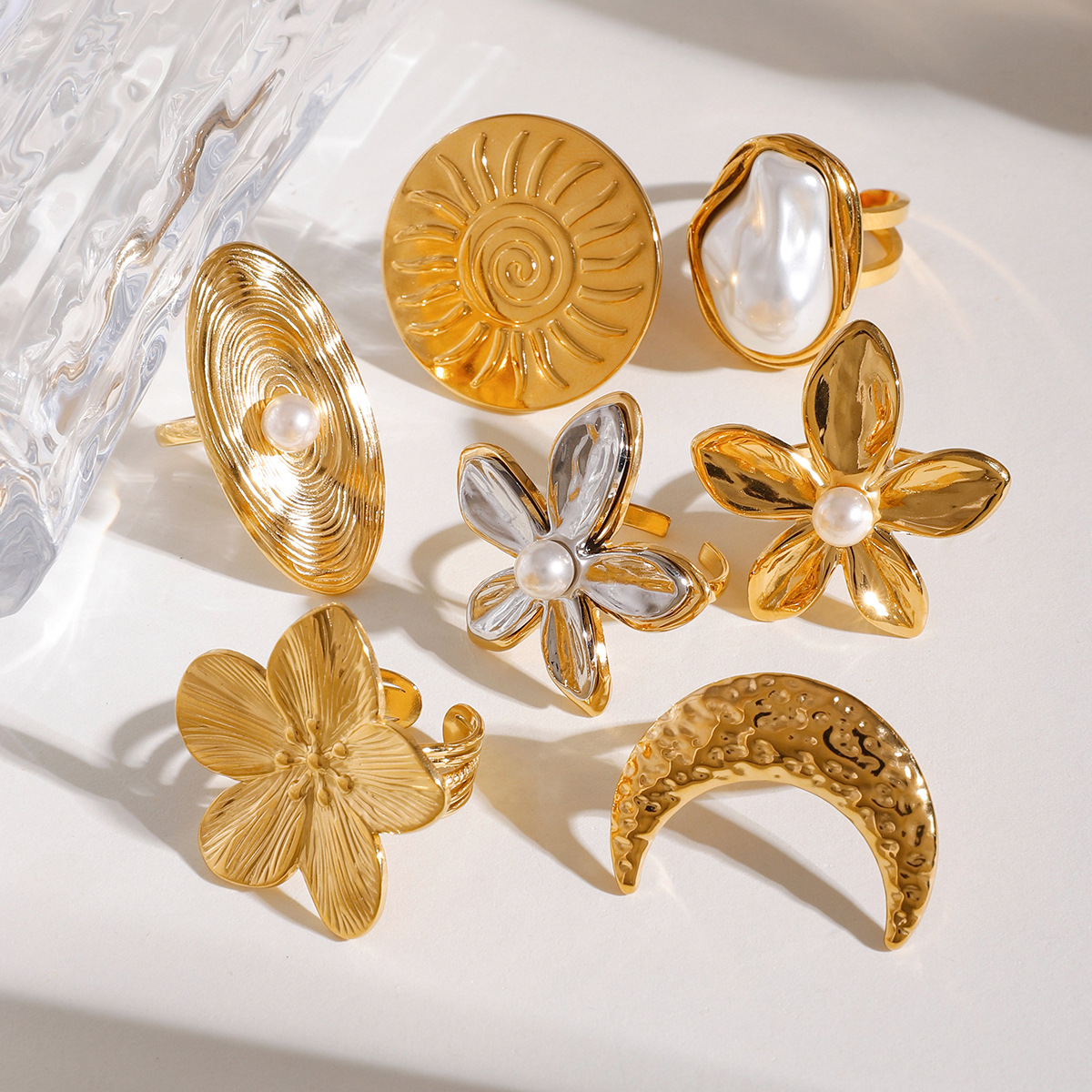 Rozsdamentes acél Finger Ring, 304 rozsdamentes acél, -val Műanyag Pearl, galvanizált, divat ékszerek & különböző stílusokat a választás & a nő, aranysárga, Által értékesített PC