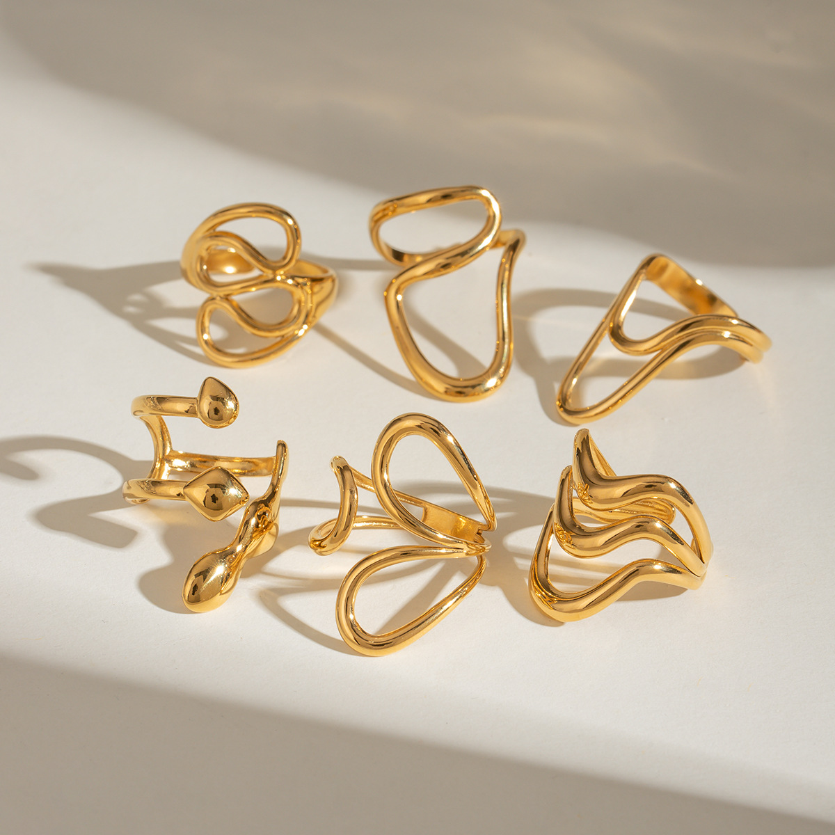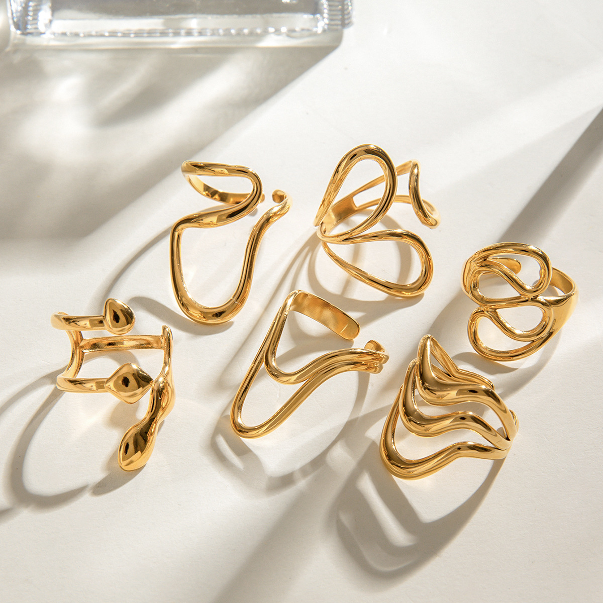 Rozsdamentes acél Finger Ring, 304 rozsdamentes acél, galvanizált, divat ékszerek & különböző stílusokat a választás & a nő, aranysárga, Által értékesített PC