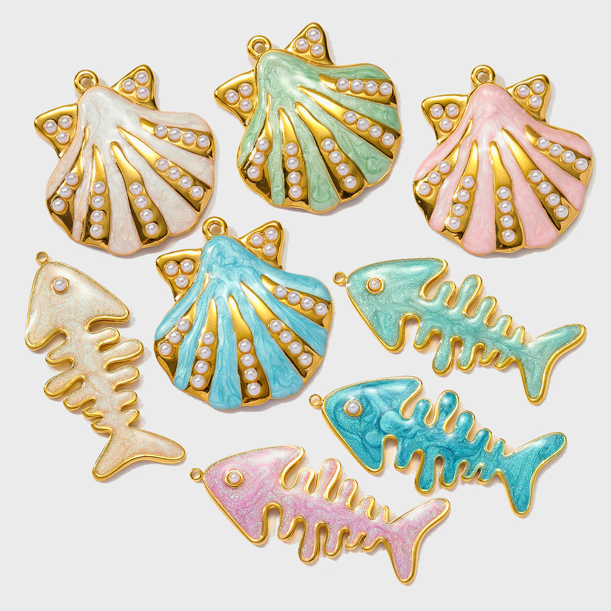 Rozsdamentes acél Ékszerek Medálok, 304 rozsdamentes acél, Kagyló, galvanizált, DIY, több színt a választás, 10PC-k/Bag, Által értékesített Bag