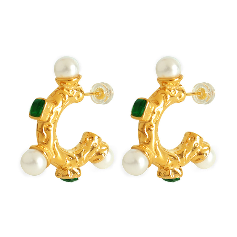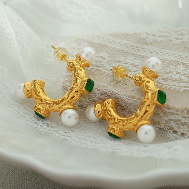 Stainless Steel Stud fülbevaló, 304 rozsdamentes acél, -val Műanyag Pearl, divat ékszerek & mikro egyengetni cirkónia & a nő, aranysárga, 24x30mm, Által értékesített pár