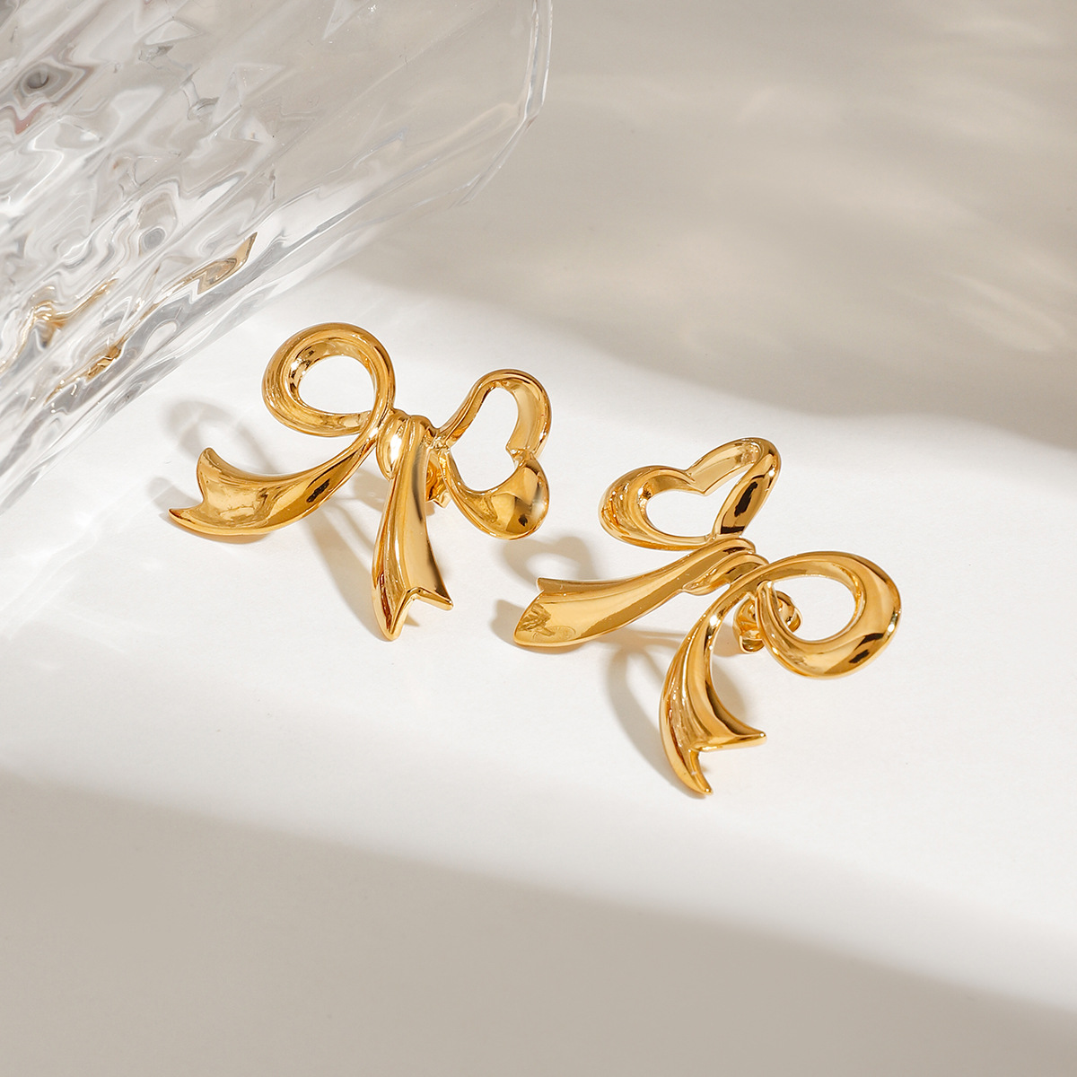 Stainless Steel Stud fülbevaló, 304 rozsdamentes acél, Bowknot, arany színű aranyozott, divat ékszerek, aranysárga, Által értékesített pár