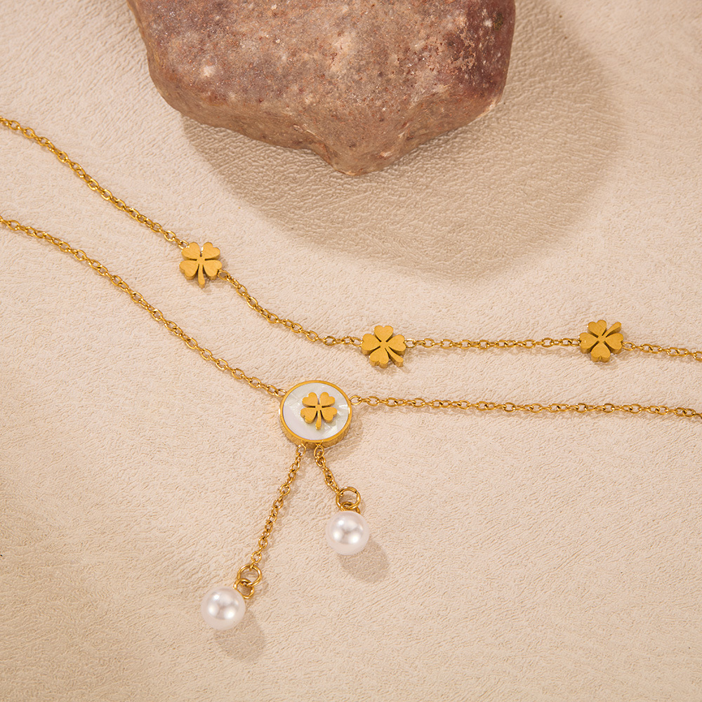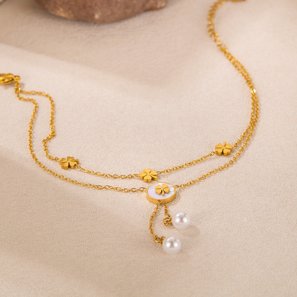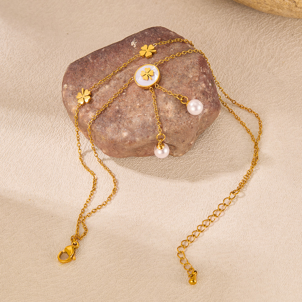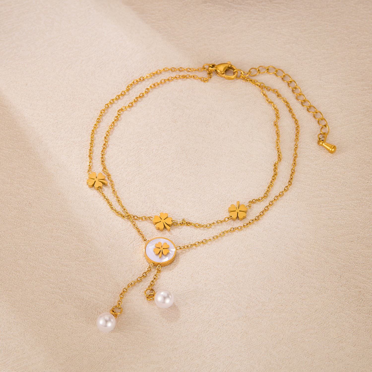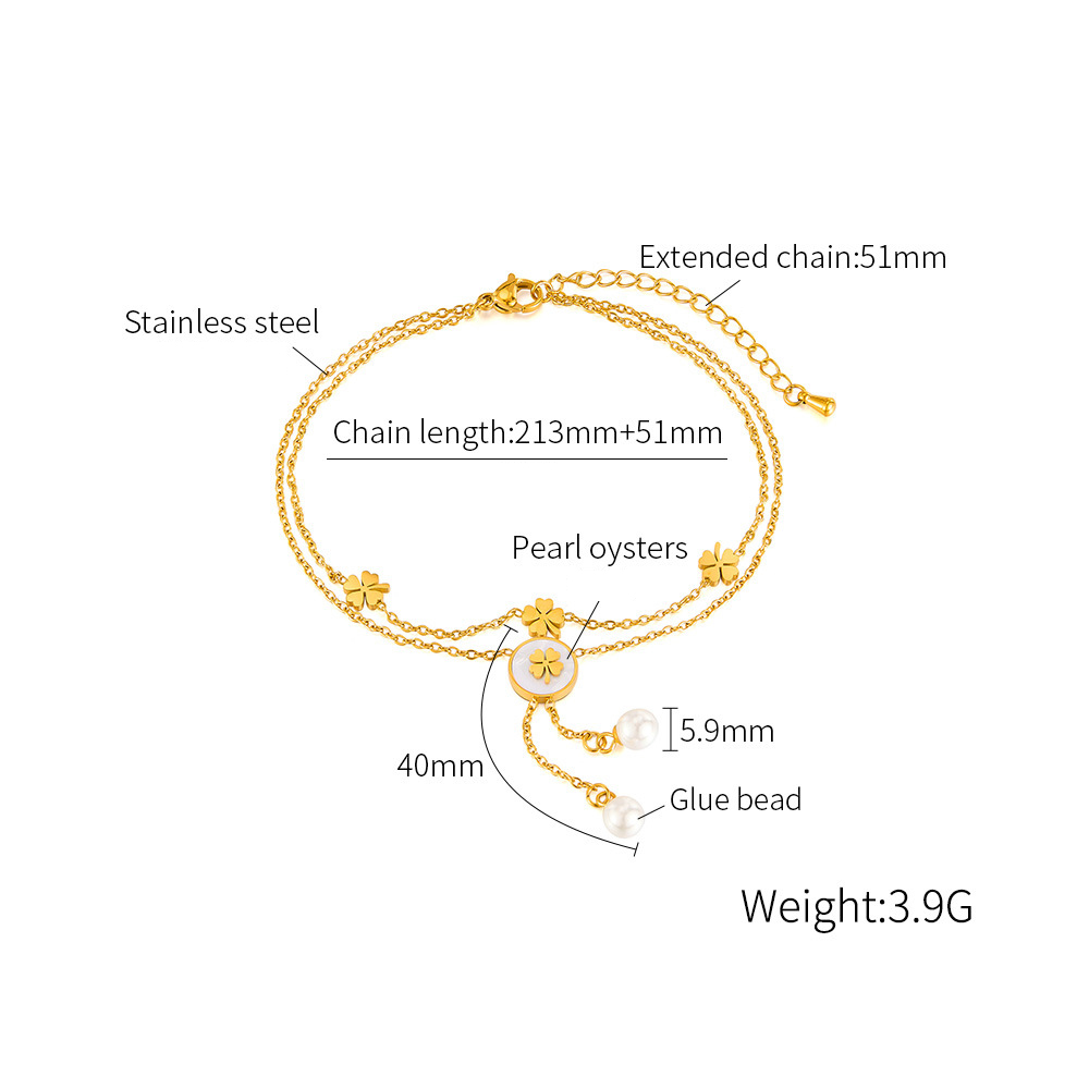 Rozsdamentes acél csizma, 304 rozsdamentes acél, -val Műanyag Pearl, -val 51mm extender lánc, Kétrétegű & divat ékszerek & a nő, aranysárga, Hossz 213 mm, Által értékesített PC