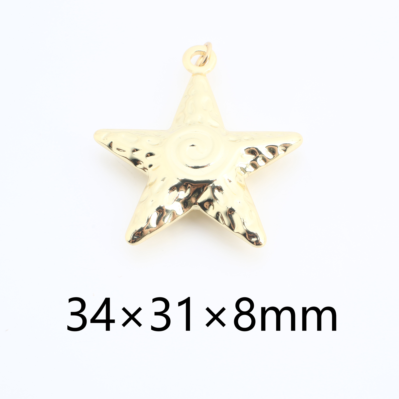 Brass Ékszer Medálok, Sárgaréz, Csillag, arany színű aranyozott, DIY, 34x31x8mm, Által értékesített PC