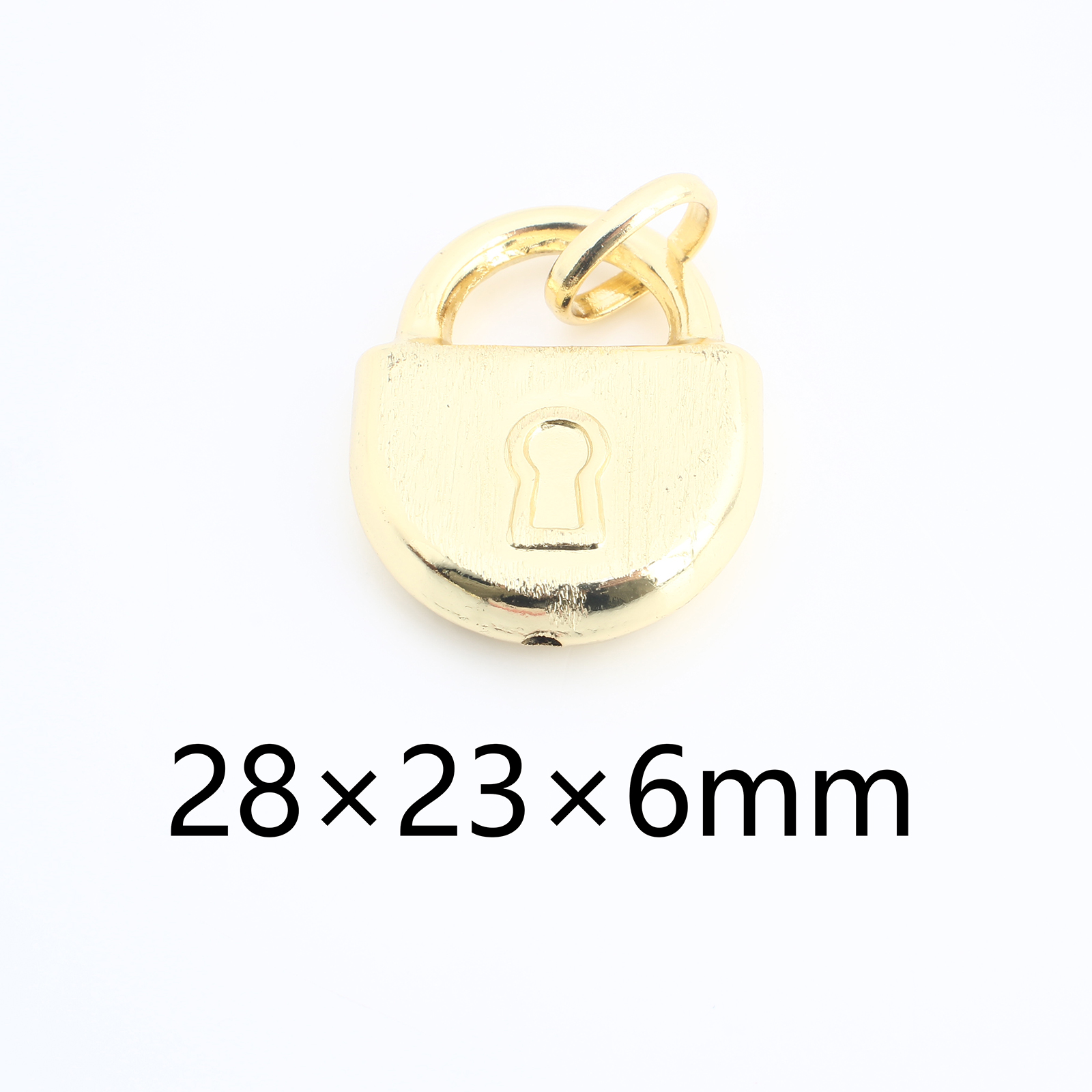 Brass Ékszer Medálok, Sárgaréz, Zár, arany színű aranyozott, DIY, 28x23x6mm, Által értékesített PC
