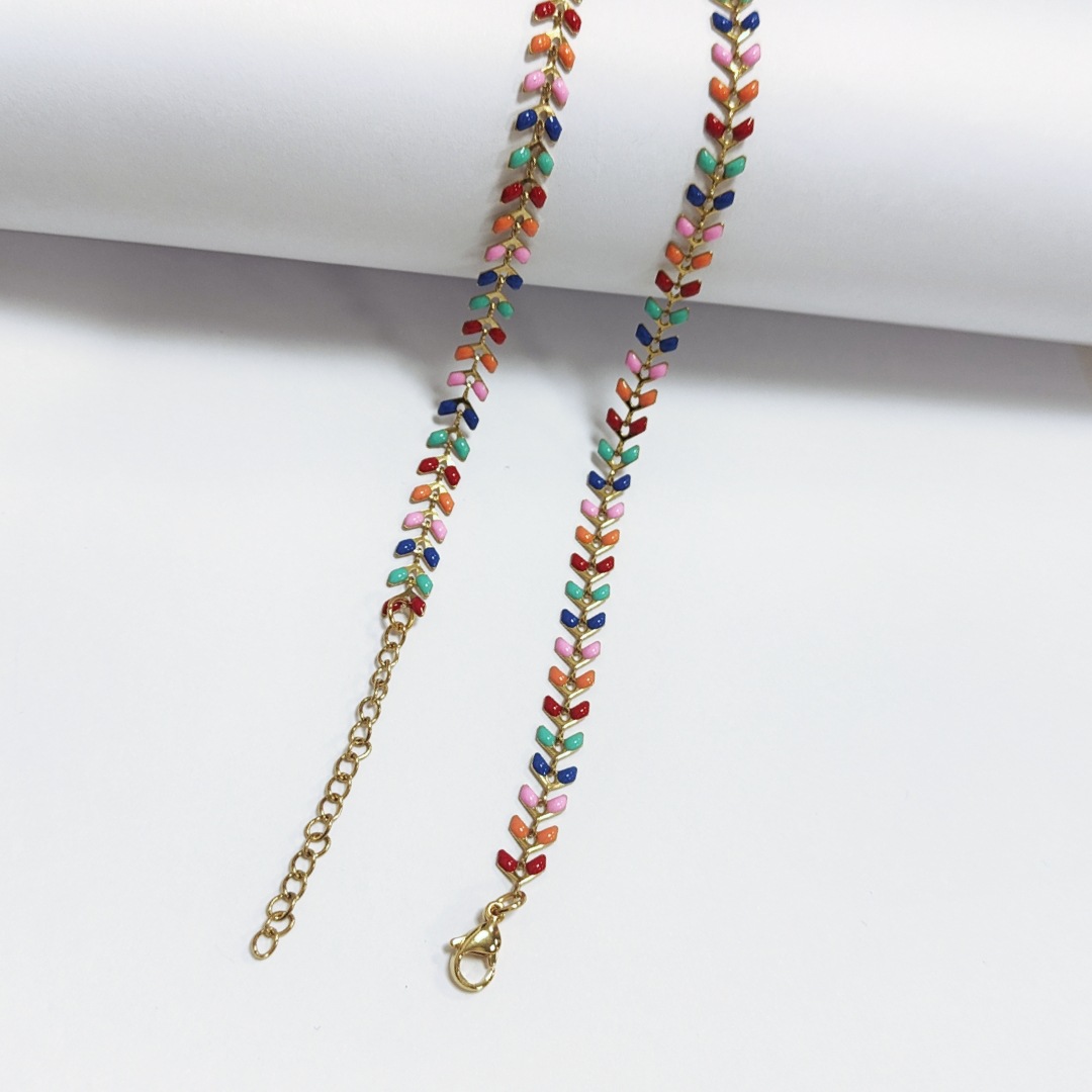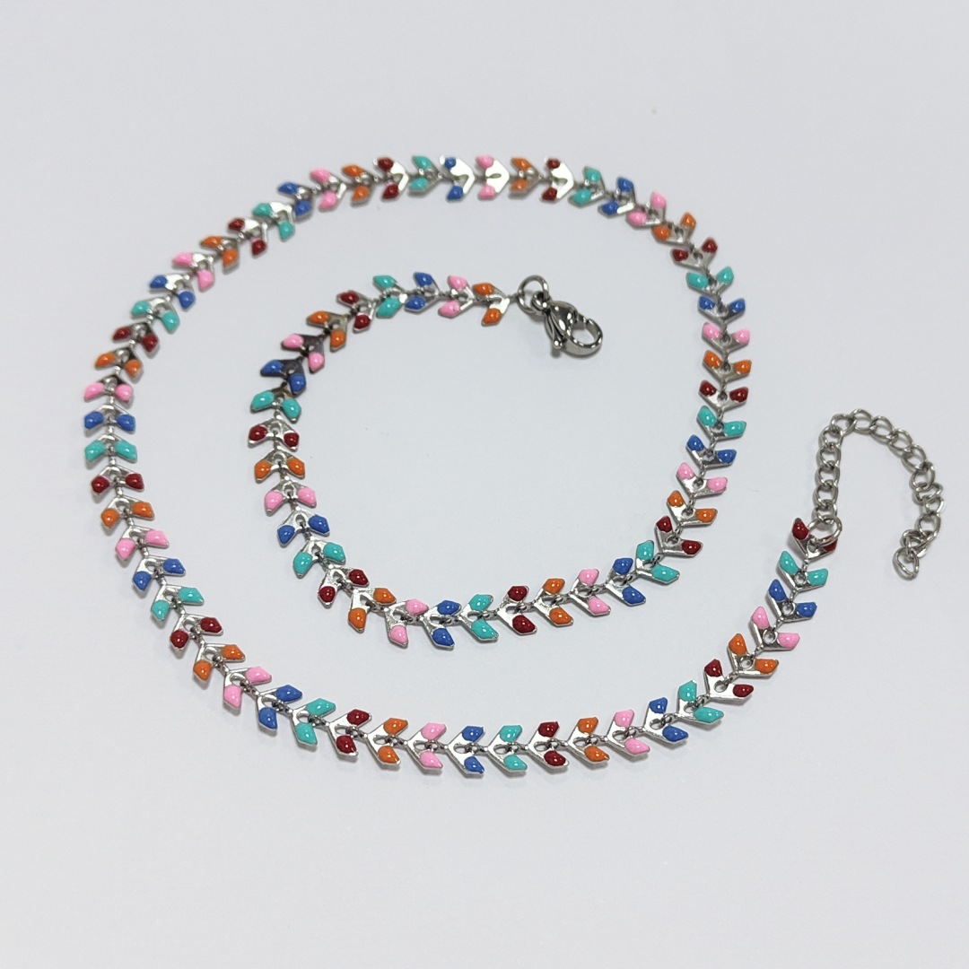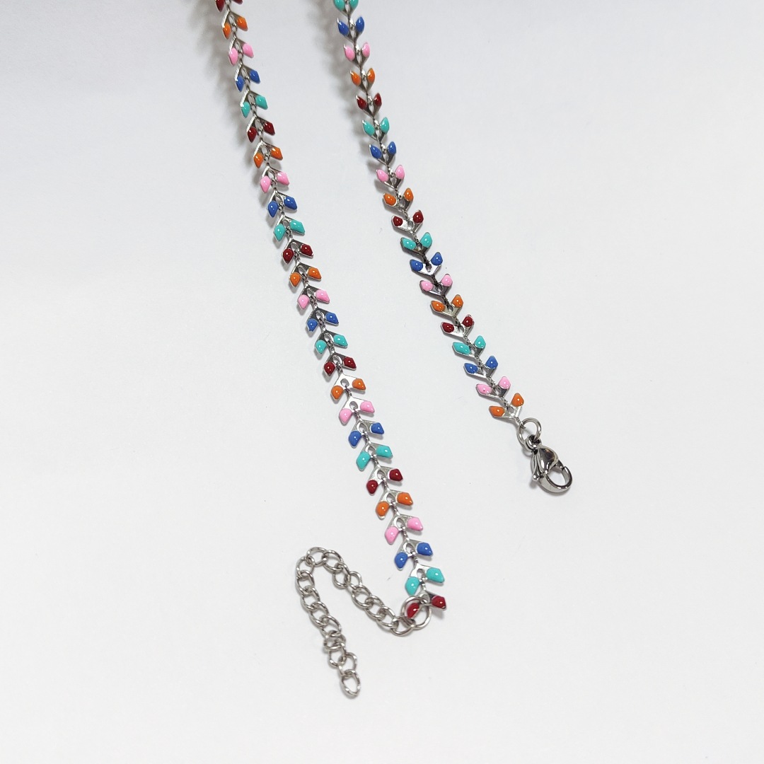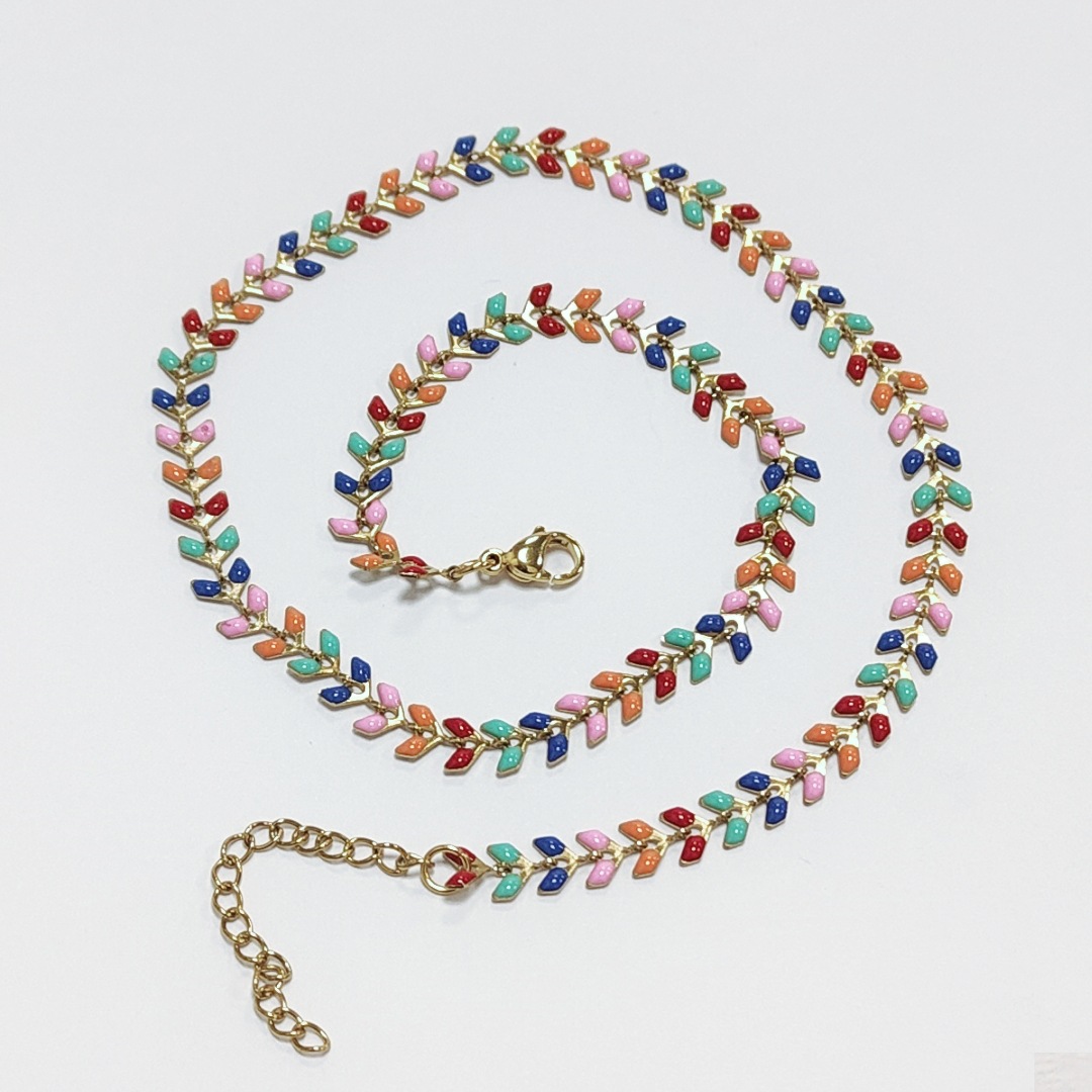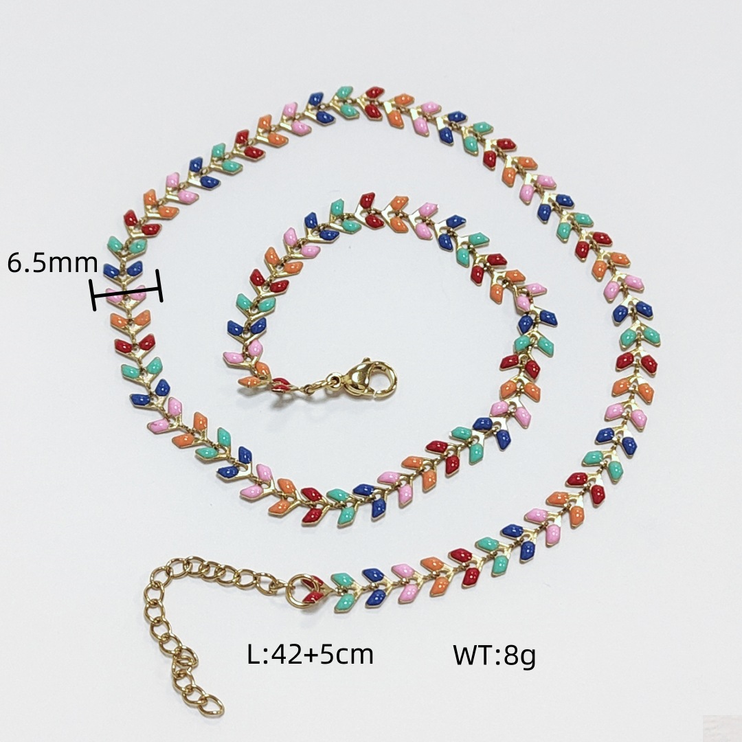 Rozsdamentes acél lánc nyaklánc, 304 rozsdamentes acél, Levél növényen, galvanizált, a nő & zománc, több színt a választás, Hossz 42 cm, Által értékesített PC