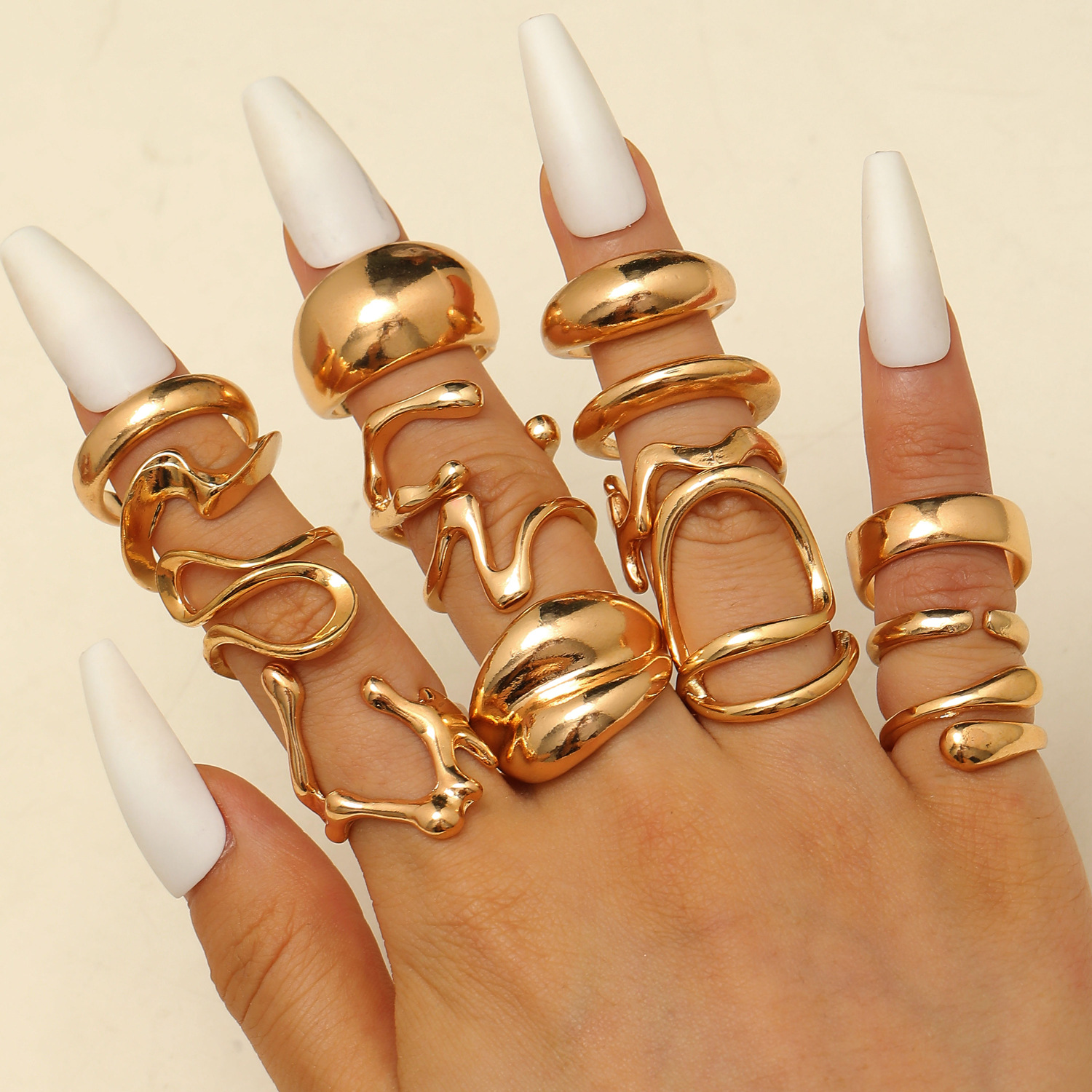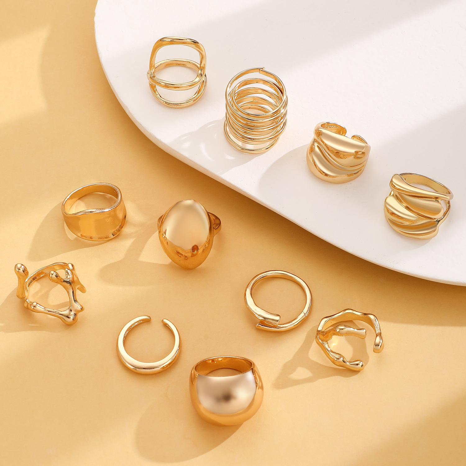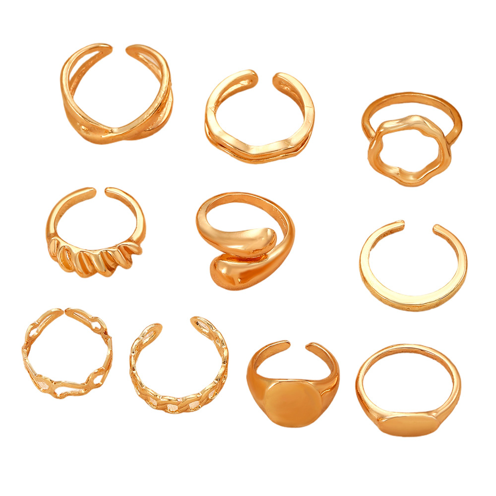 Cink Alloy Ring Set, Cink ötvözet, arany színű aranyozott, divat ékszerek, több színt a választás, Által értékesített Set